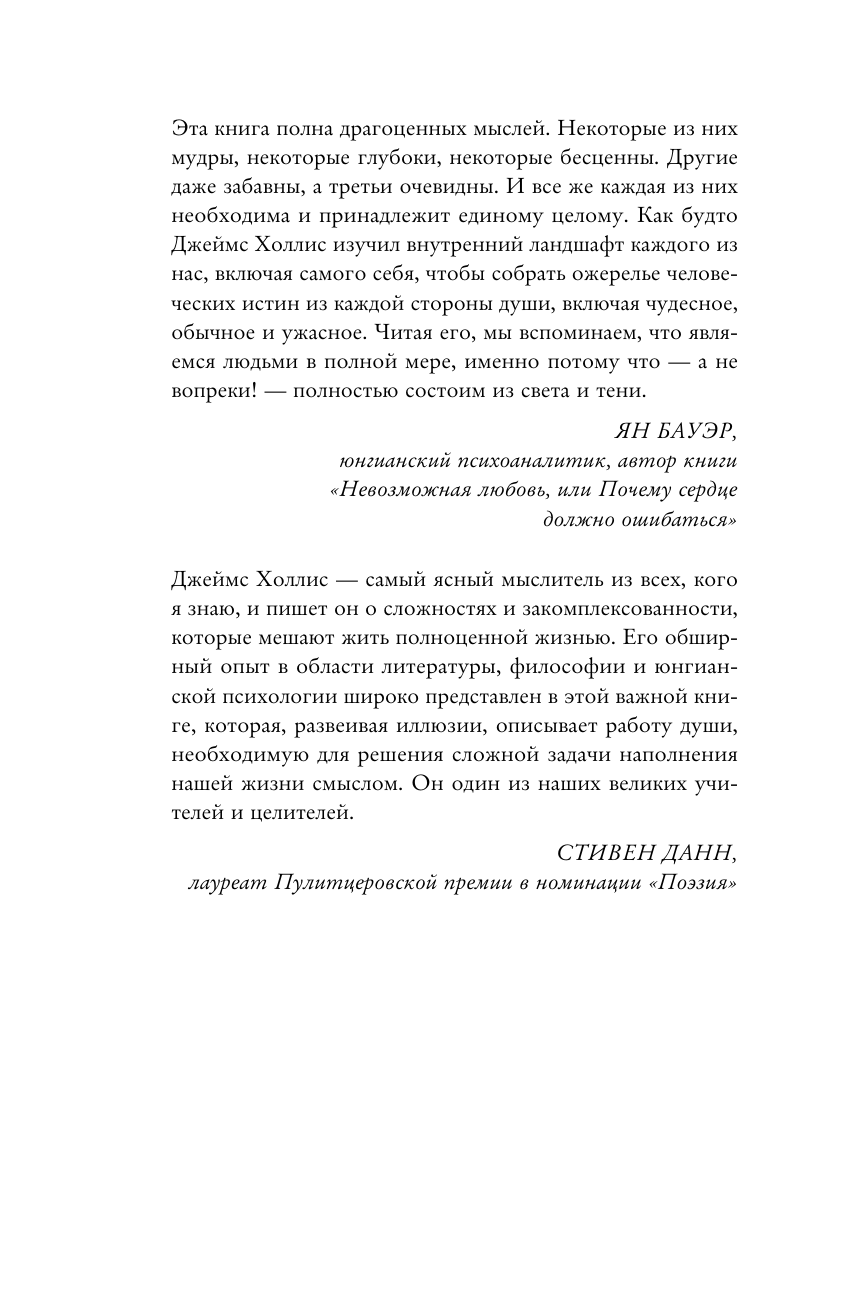 Джеймс Холлис, юнгианский психоаналитик, предлагает исследовать смыслы, которые выведут вас из тупика, где вы терпите неприятную работу и людей, которые вас не вдохновляют, на дорогу ценностей и удовлетворенности жизнью.