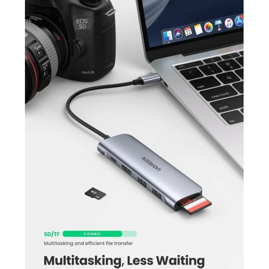Сервис сравнения цен СкидкаГИД предлагает сравнить цены на товар «USB-хаб UGREEN CM195 USB Type-C (3xUSB 3.0 Type-A HDMI SD microSD) Серый Док-станция 70410»