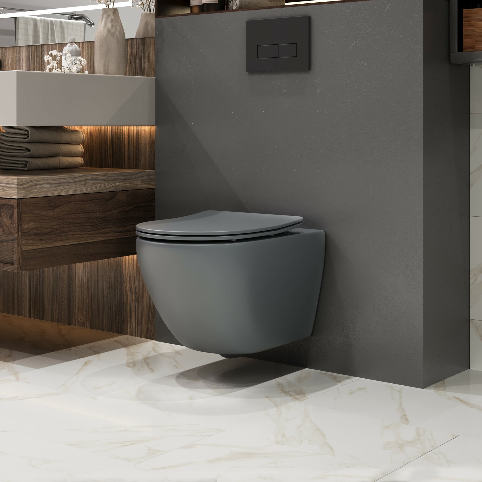 Подвесной унитаз Grossman Торнадо GR-4457GMSQ безободковый, с сиденьем микролифт, серый матовый