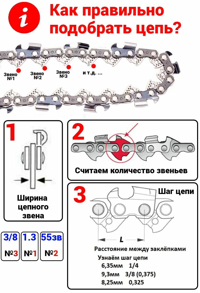 | Шаг цепи, дюйм | 3/8 (0.375) |