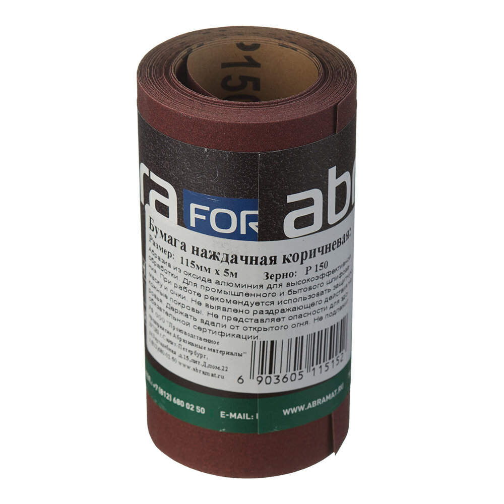 Бумага наждачная коричневая ABRAforce размером ширина 115мм длина 5м зерно Р150. Предназначена для шлифовки мягких пород дерева, пластика и шпаклевок. Изготовлена на бумажной основе, применяется для сухой шлифовки. Используется для ручной шлифовки. В качестве абразива используется оксид алюминия. Плотность бумаги 150-180 г/м².