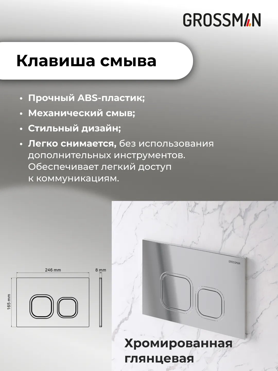 Комплект Унитаз подвесной с инсталляцией Grossman Galaxy 97.4414S.02.100 безободковый, белый + Кнопка смыва хром глянцевый