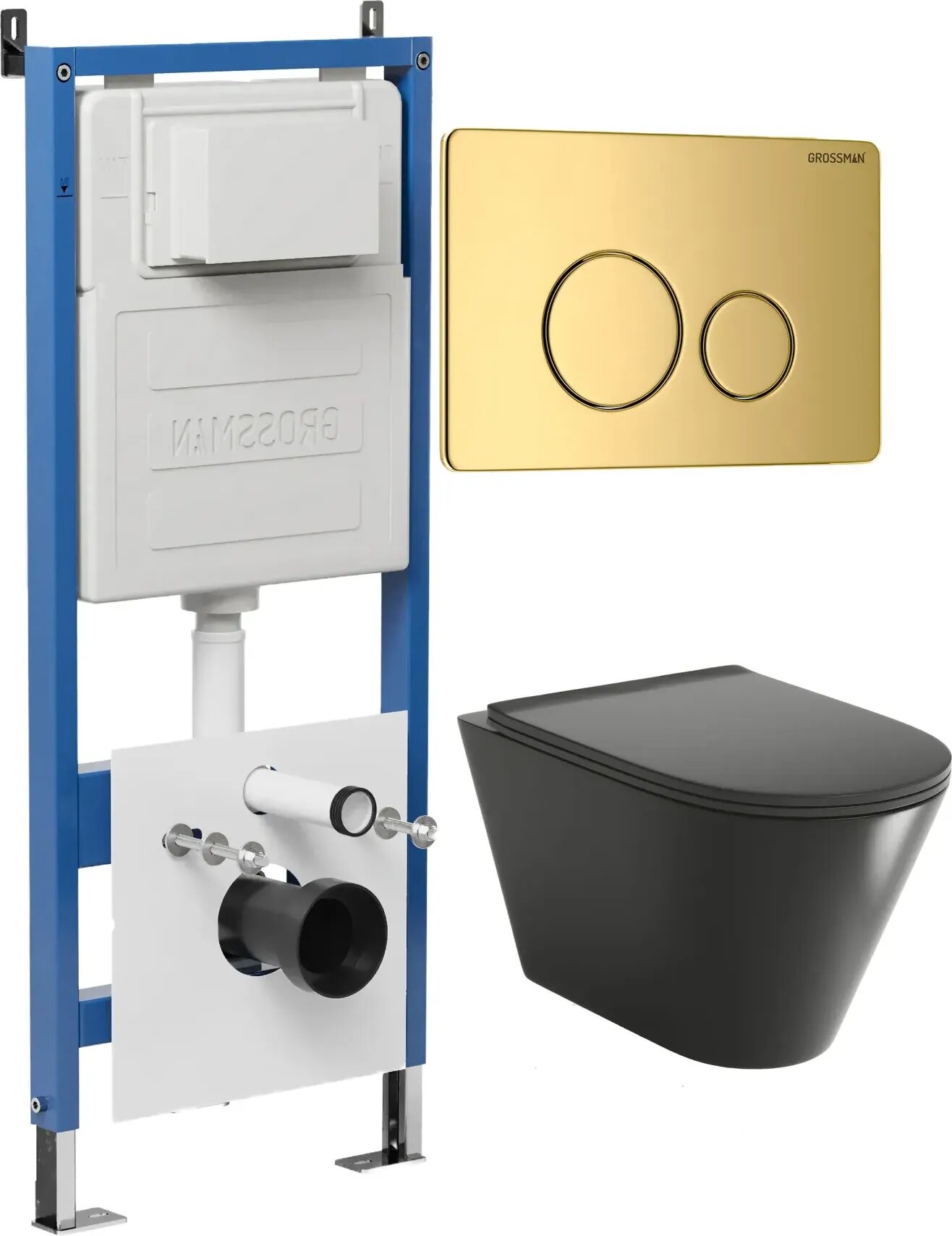 Сервис сравнения цен СкидкаГИД предлагает сравнить цены на товар «Комплект Унитаз подвесной с инсталляцией Grossman Style 97.4477BMS.05.30M безободковый, черный матовый + Кнопка смыва золото глянцевое»