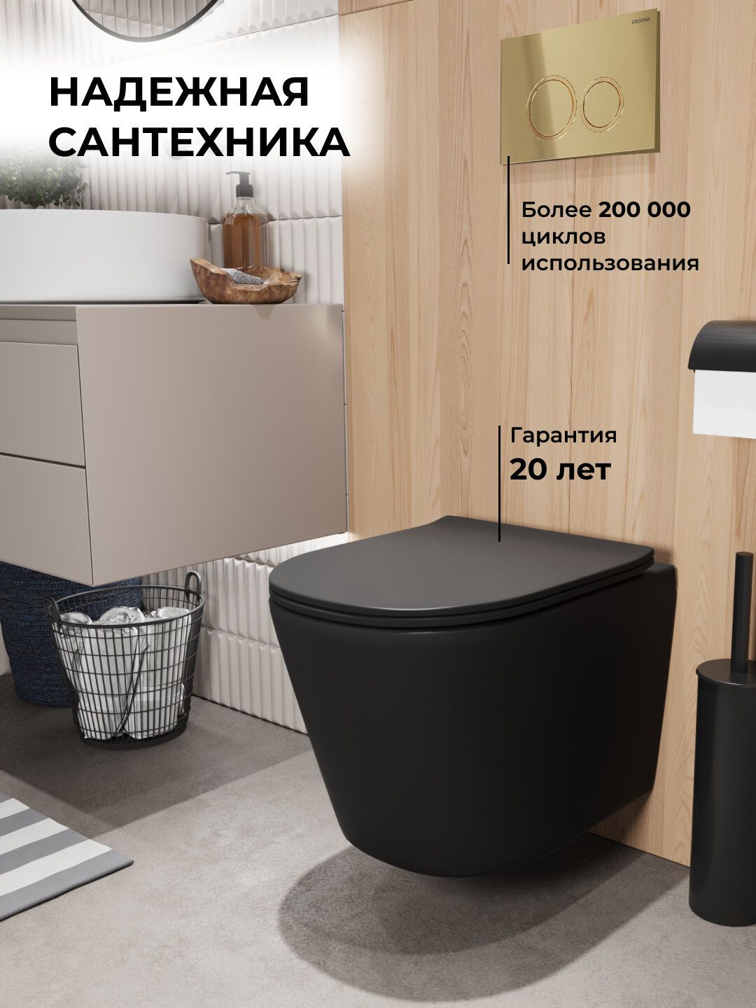 Модель: Galaxy 97.4477BMSQ.01.300 безободковый, черный матовый + Кнопка смыва золото глянцевое