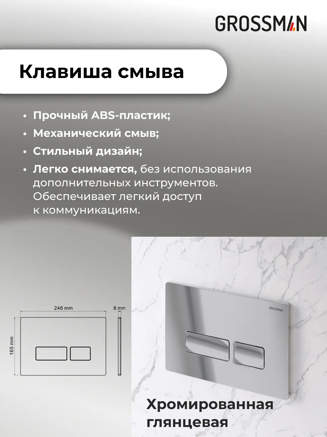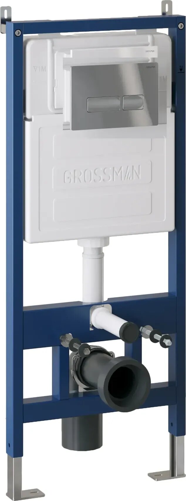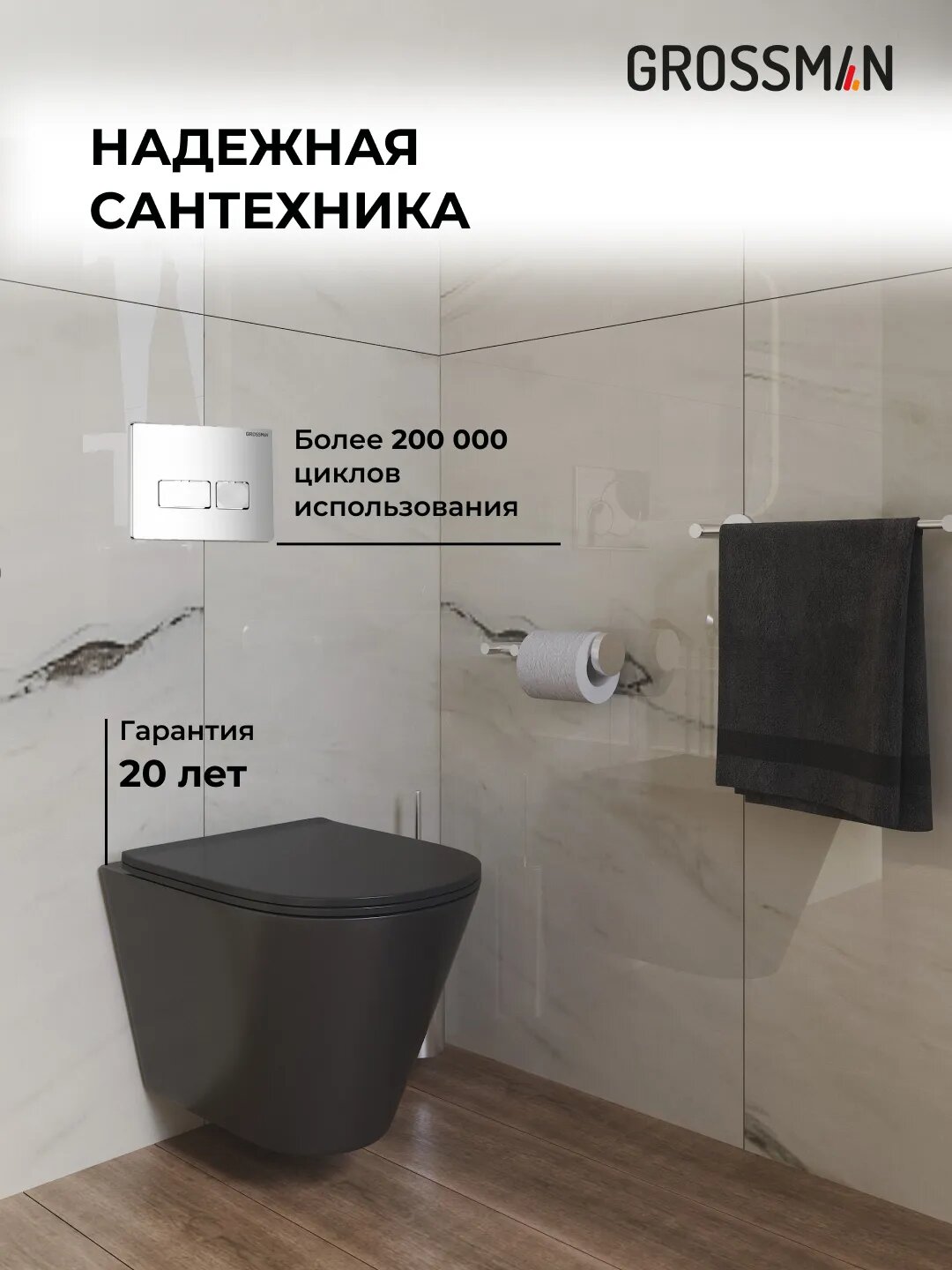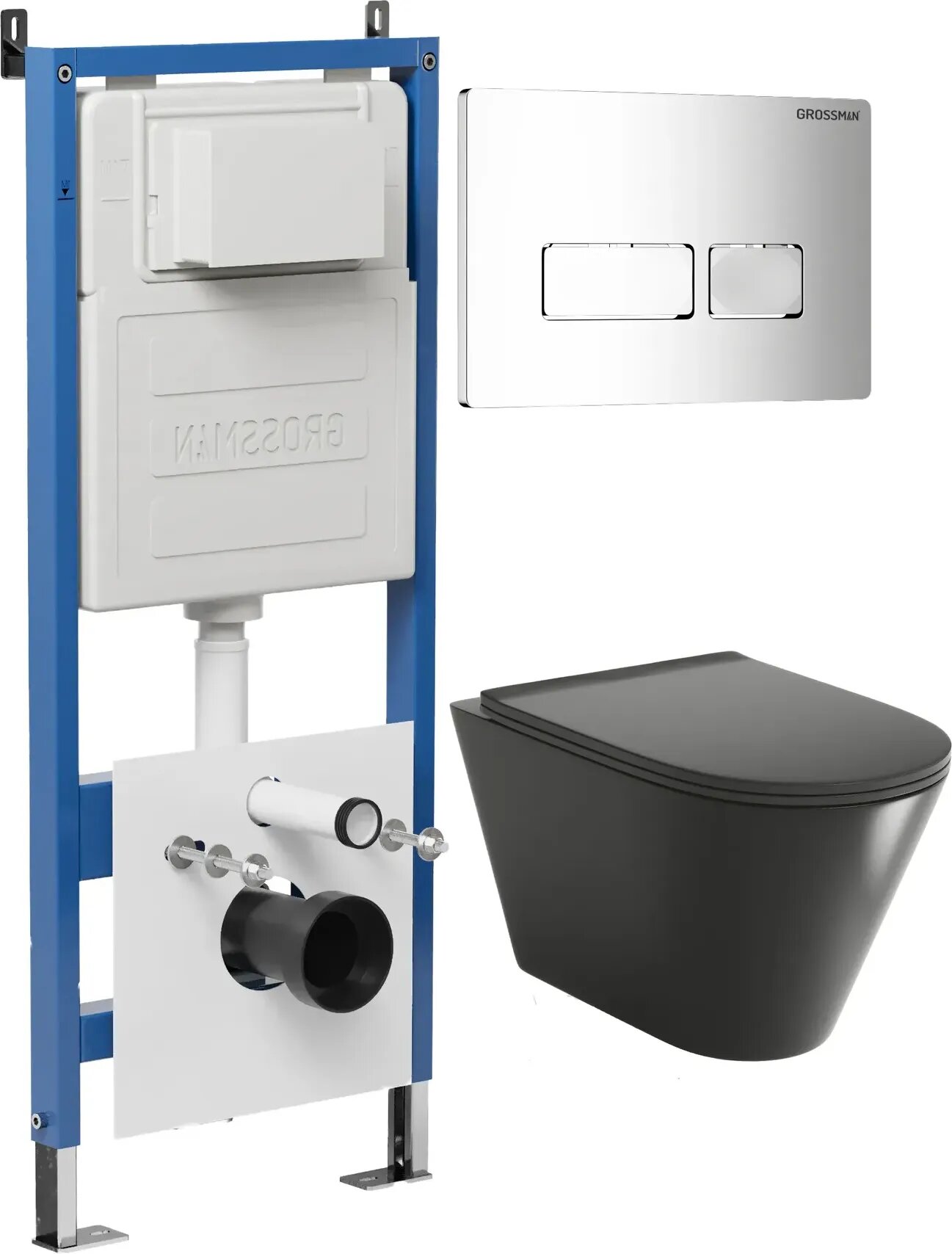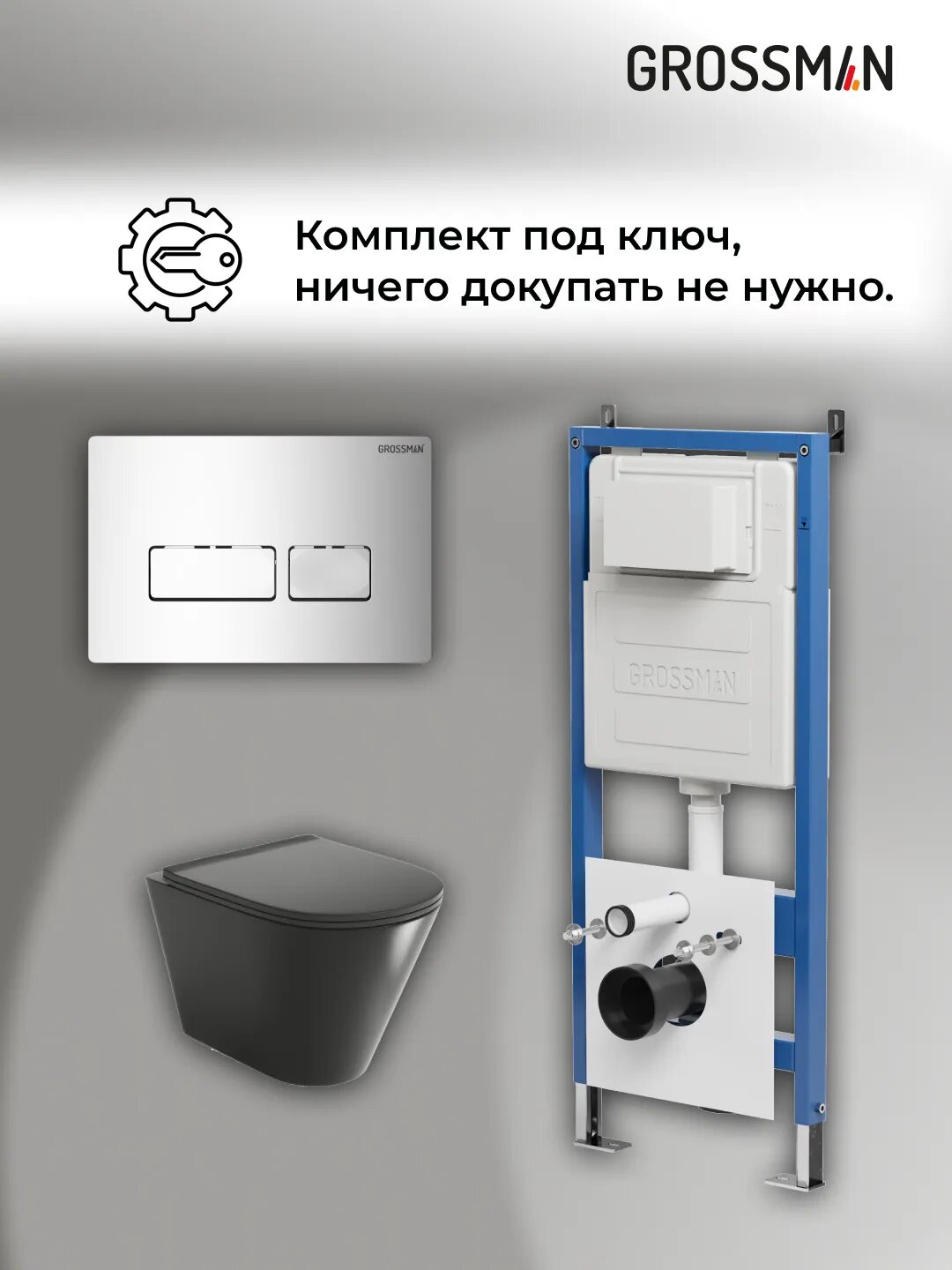 Комплект Унитаз подвесной с инсталляцией Grossman Pragma 97.4477BMS.03.100 безободковый, черный матовый + Кнопка смыва хром глянцевый