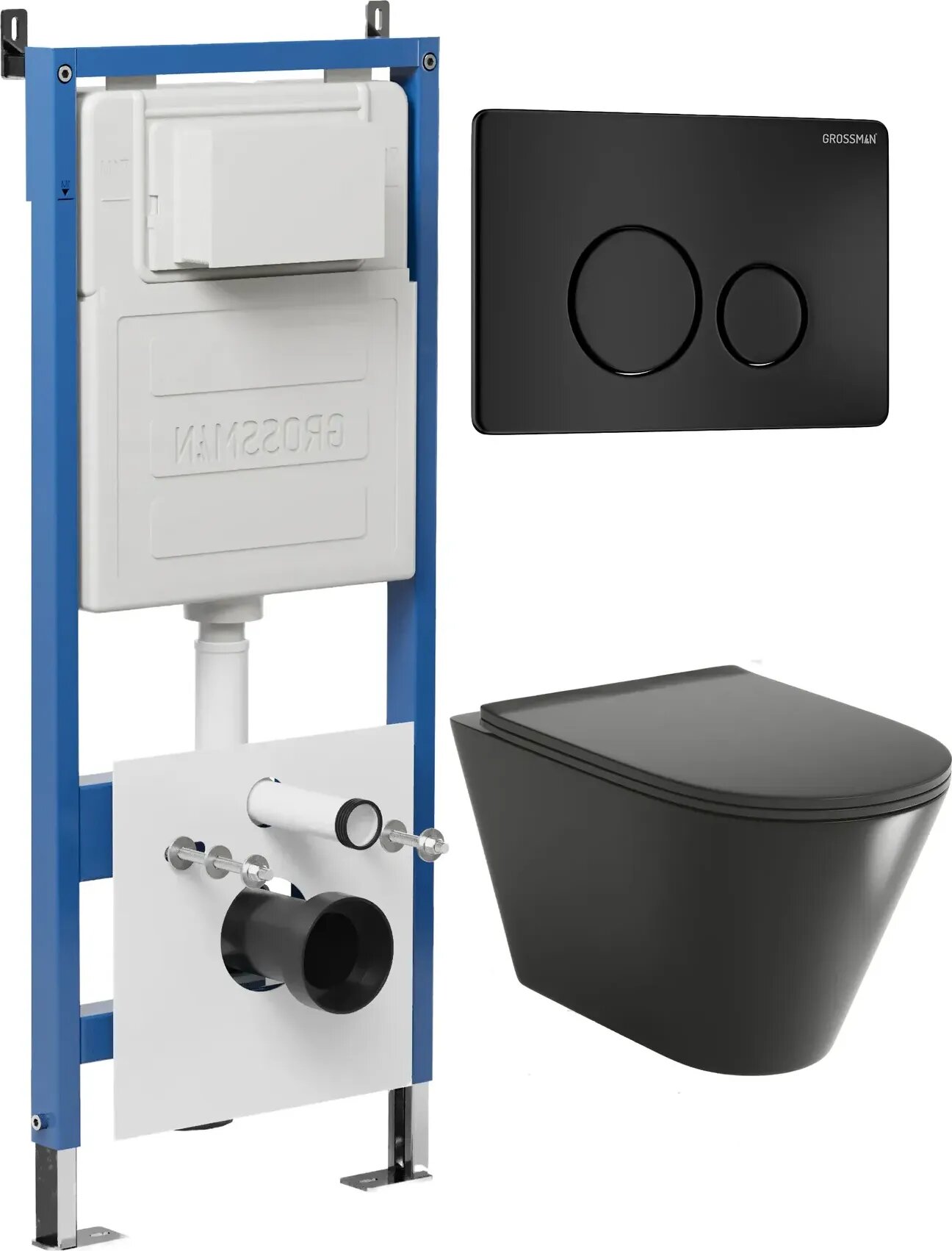 Комплект Унитаз подвесной с инсталляцией Grossman Style 97.4477BMSQ.05.21M безободковый, черный матовый + Кнопка смыва черная матовая