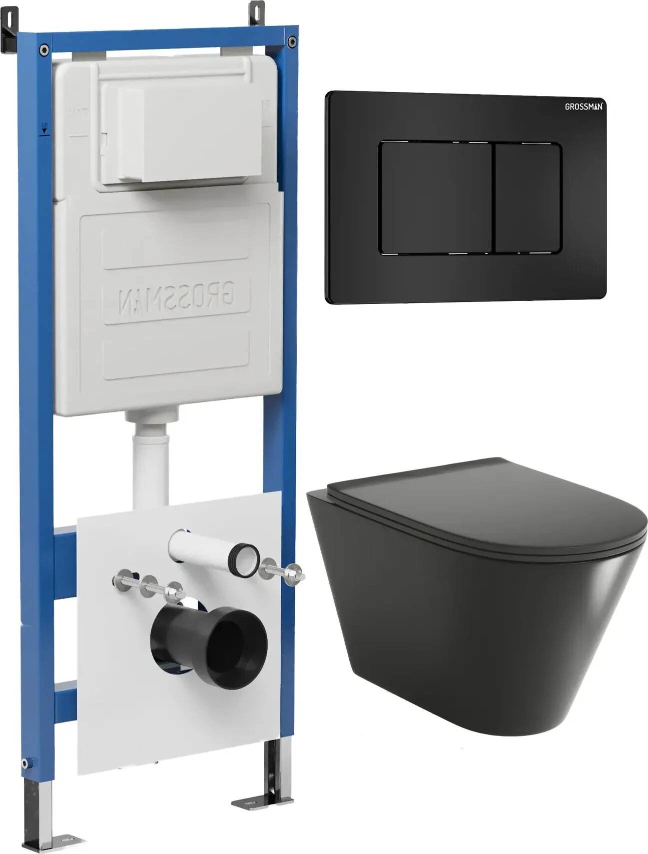 Комплект Унитаз подвесной с инсталляцией Grossman Classic 97.4477BMS.04.21M безободковый, черный матовый + Кнопка смыва черная матовая