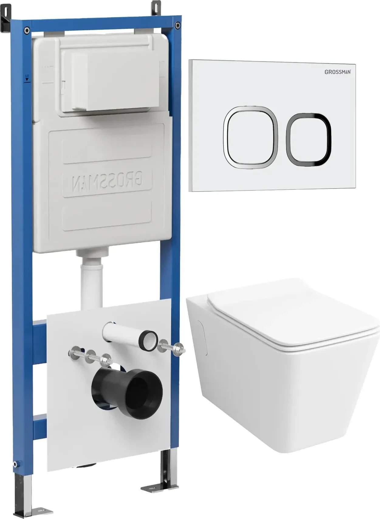Комплект Унитаз подвесной с инсталляцией Grossman Galaxy 97.4414S.02.000 безободковый, белый + Кнопка смыва белая