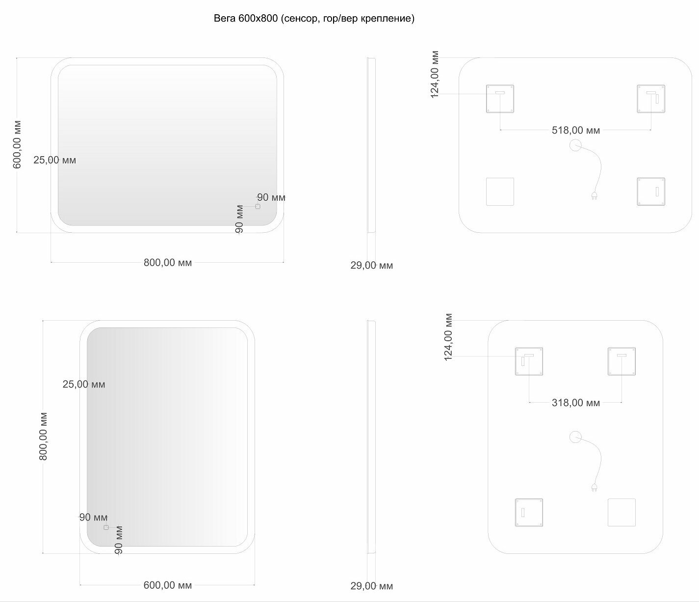 | Вид зеркала | зеркальное полотно |