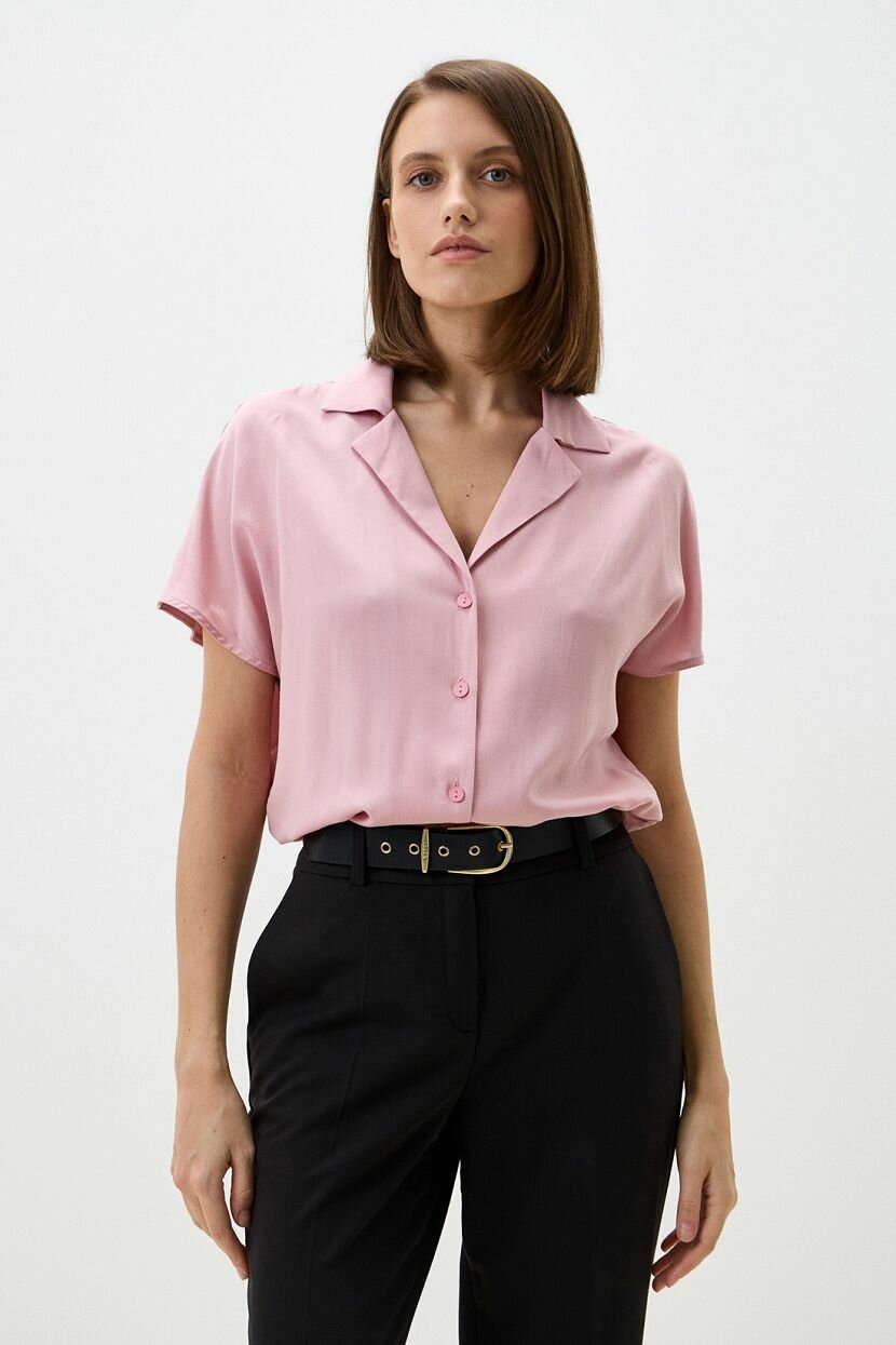 Блузка из мягкой бархатистой вискозы с английским воротником и цельнокроеными короткими рукавами добавит в любой утонченность и стиль. Модель в однотонном исполнении подойдёт как для офисных будней, так и для повседневной носки. Блузка свободного кроя идеальна для женщин высокого роста и доступна в больших размерах. Застежка на пуговицы подчеркивает классический стиль, лёгкий воздушный материал прекрасно дополнит летние и весенние образы. Стильная блузка подойдёт и для вечерних мероприятий при условии верной стилизации. Может заменить футболку в аутфитах на лето для создания более нежного и женственного образа. Носите навыпуск или заправленной. Женская однотонная базовая блузка — отличный выбор для тех, кто ценит премиальное качество и стиль в каждой детали. Рекомендуем бережную стирку при температуре 30°C, чтобы сохранить первоначальный вид и качество ткани.