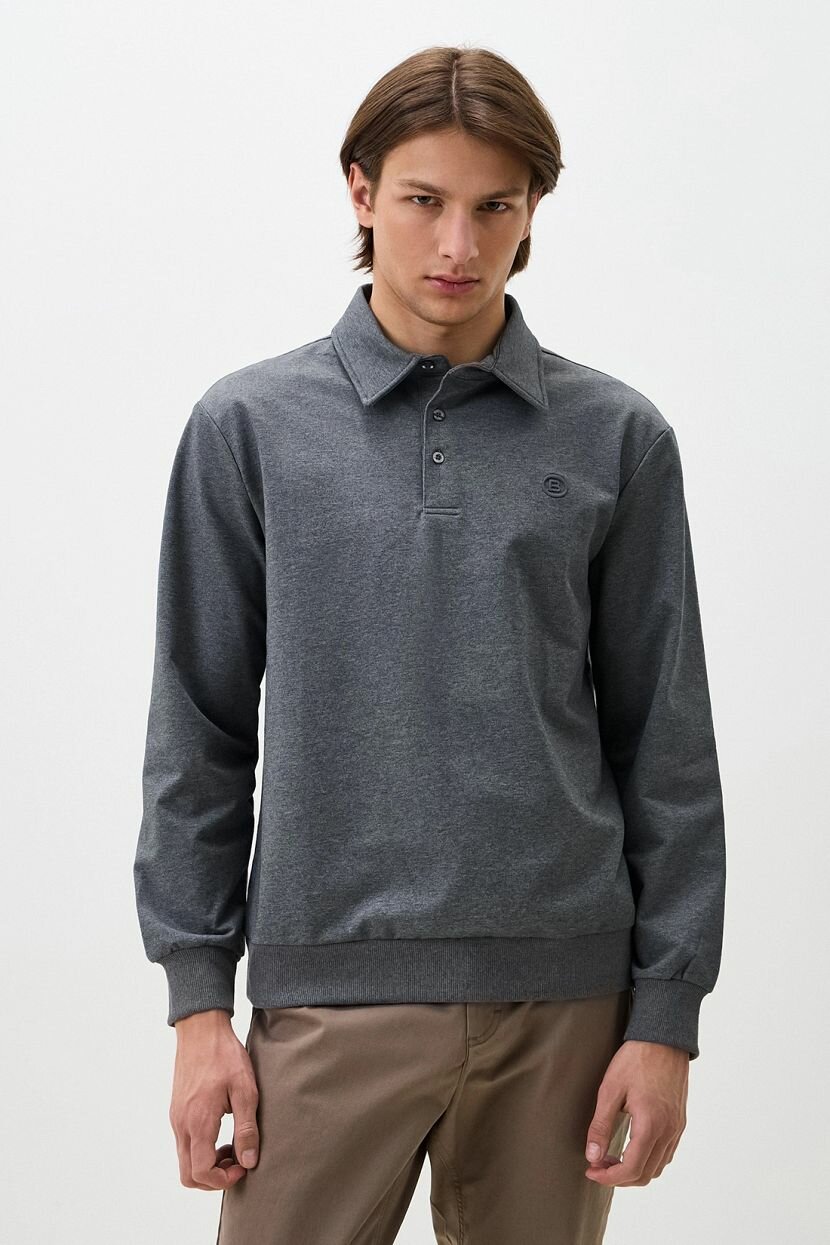 Мужская толстовка в стиле поло из гладкого футерного полотна средней плотности с шелковистой изнанкой. Мягкий материал обеспечит комфорт в деловых аутлуках для офиса и повседневных для прогулок. Трикотажная ткань высокого качества включает 68% хлопка, 27% полиэстера и 5% эластана. Толстовка тёплая и мягкая благодаря натуральным волокнам, а синтетические нити добавляют материалу формоустойчивости. Воротник из основного полотна и манжеты из ткани в рубчик добавляют изделию классического шарма, а объемная вышивка лого на груди подчеркивает фирменный стиль модели. Толстовка без капюшона подойдёт для мужчин высокого роста, включая тех, кто носит большие размеры. Длинный прямой крой и удобные манжеты обеспечивают отличную посадку и комфорт на протяжении всего дня. Легко сочетается с базовыми элементами гардероба. Рекомендуем бережную стирку при 30°C для сохранения качества материала.