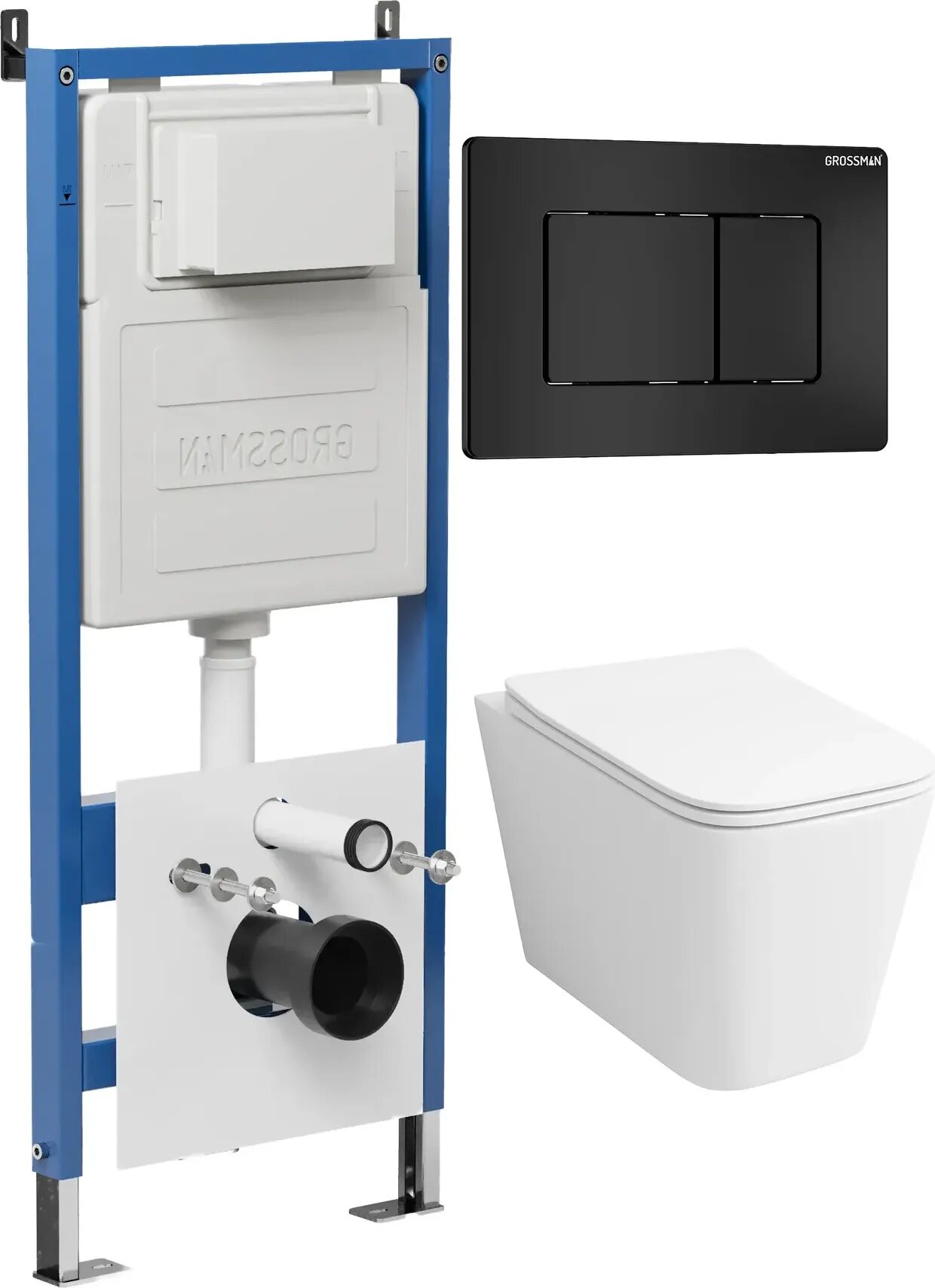 Комплект Унитаз подвесной с инсталляцией Grossman Classic 97.4441S.04.21M безободковый, белый + Кнопка смыва черная матовая