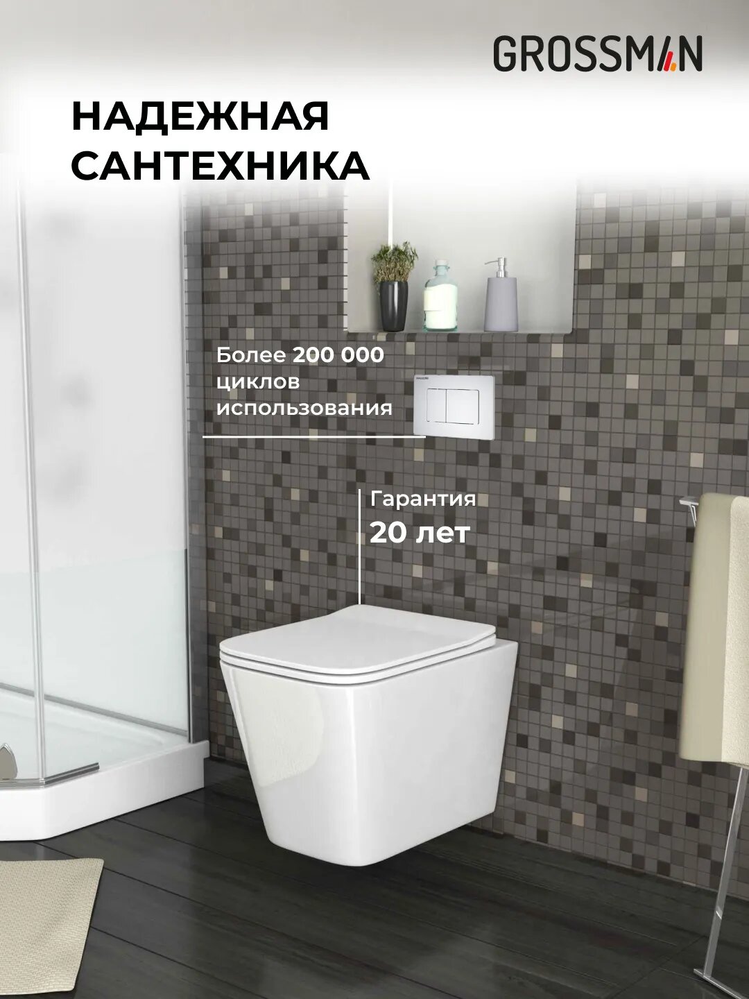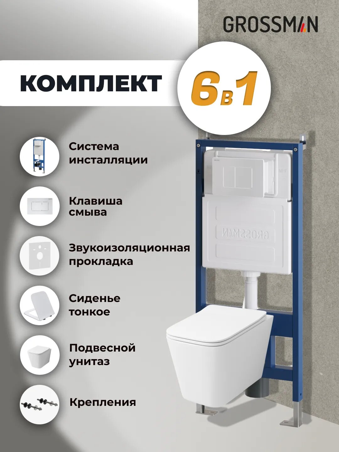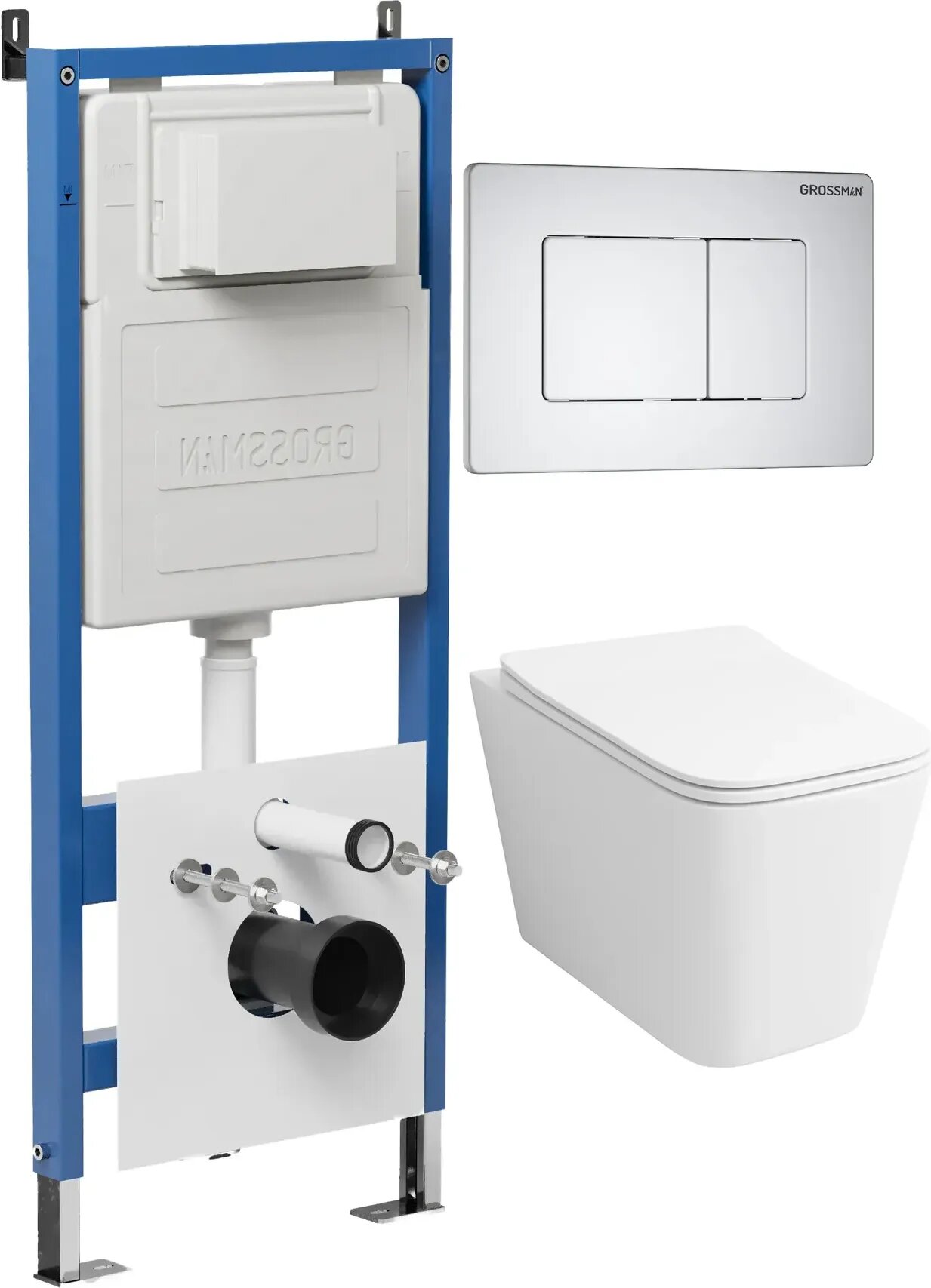 Комплект Унитаз подвесной с инсталляцией Grossman Classic 97.4441S.04.01M безободковый, белый + Кнопка смыва белая матовая