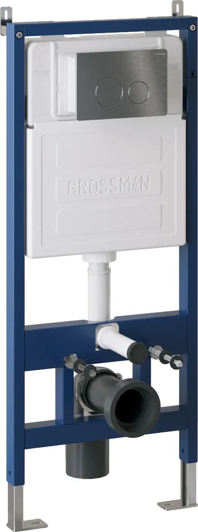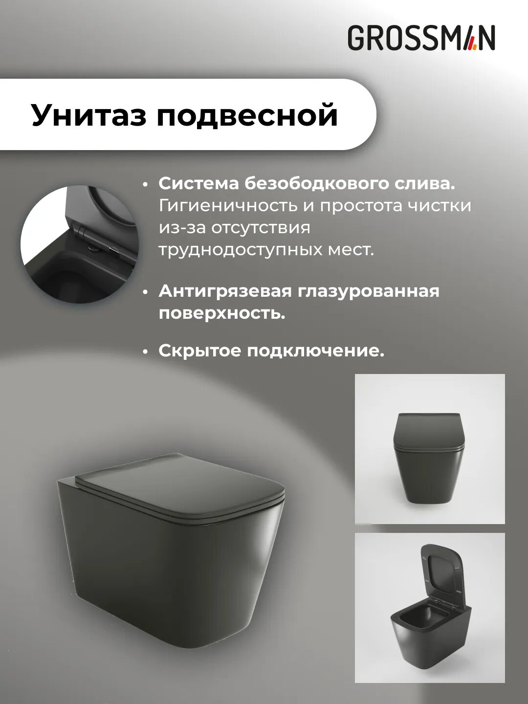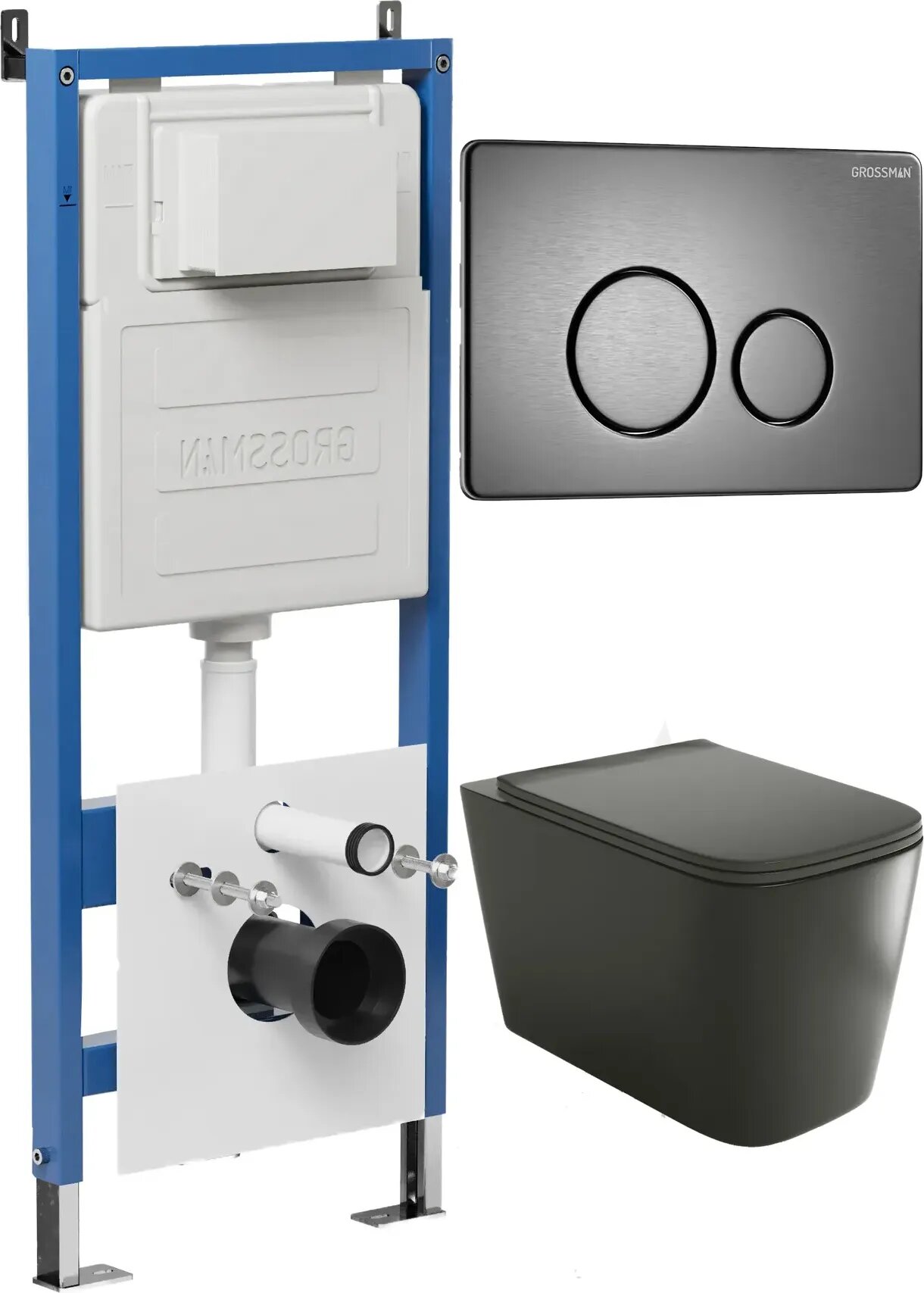 Комплект Унитаз подвесной с инсталляцией Grossman Style 97.4441BMS.05.42M безободковый, черный матовый + Кнопка смыва графит сатиновый