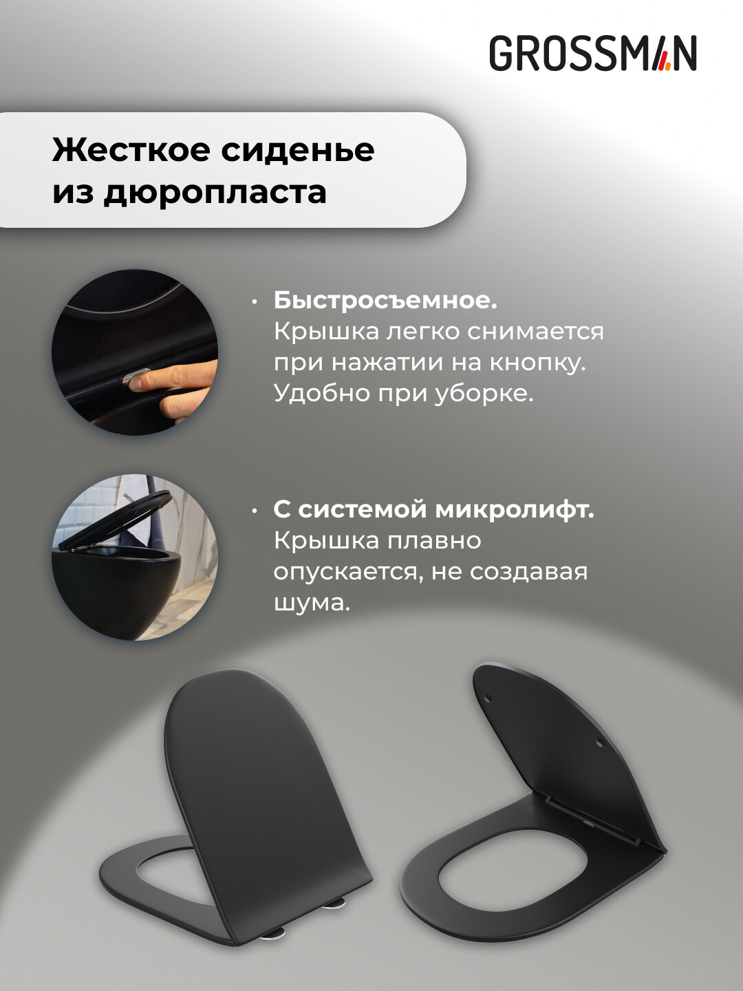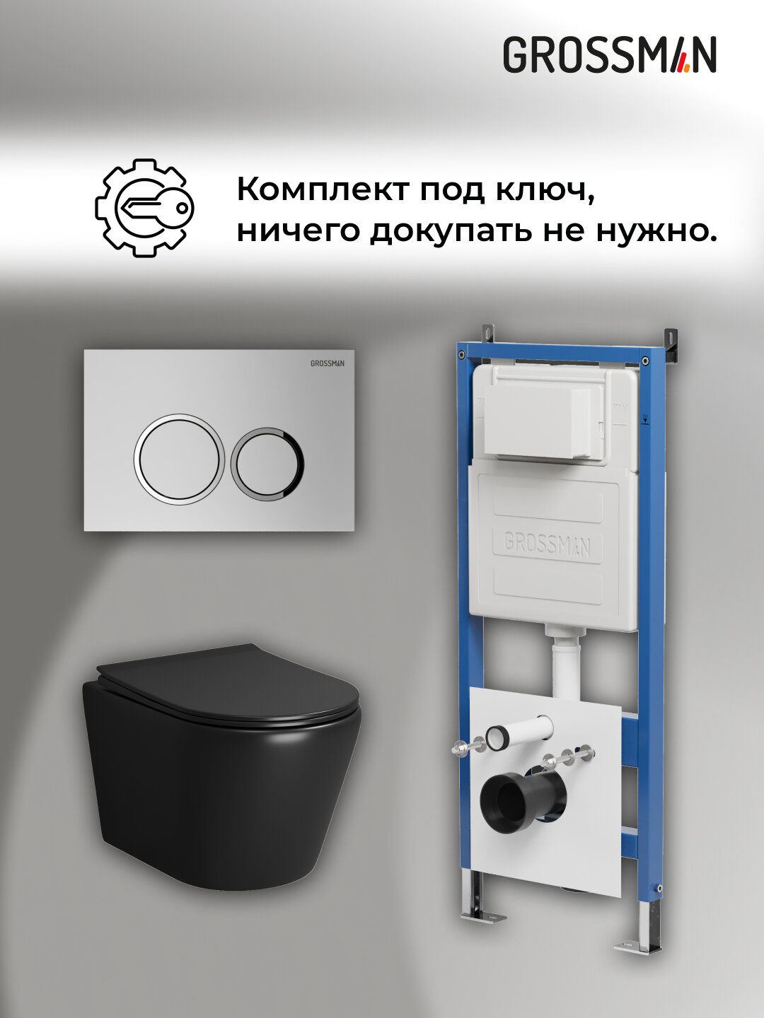 Комплект Унитаз подвесной с инсталляцией Grossman Galaxy 97.4478BMS.01.110 безободковый, черный матовый + Кнопка смыва хром матовый