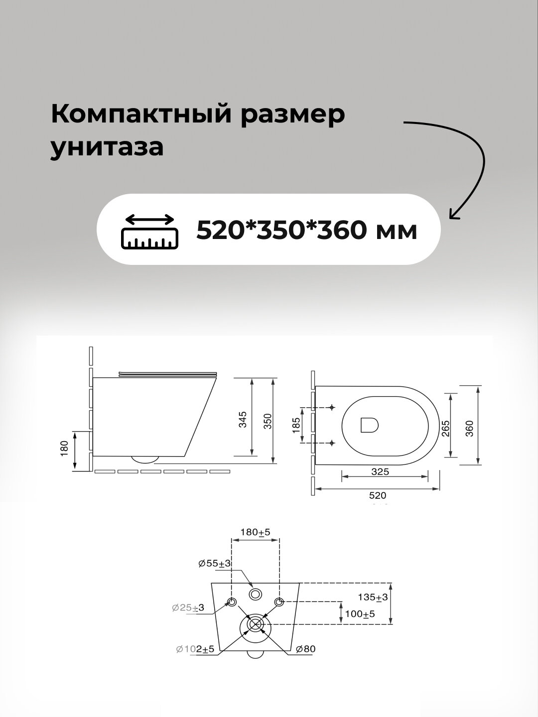 На сегодняшний день товар «Комплект Унитаз подвесной с инсталляцией Grossman Galaxy 97.4478BMS.01.110 безободковый, черный матовый + Кнопка смыва хром матовый» можно купить с кешбеком в 1 магазине: dushevoi