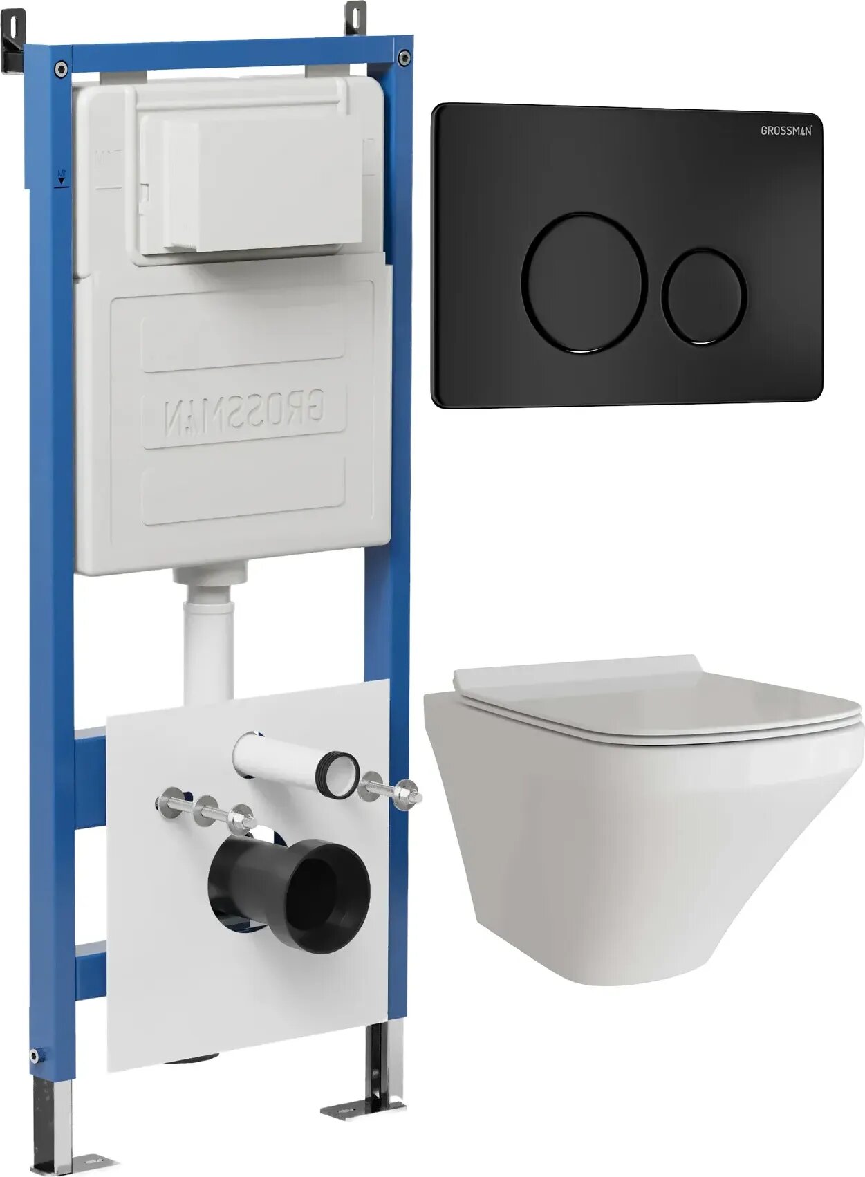 Комплект Унитаз подвесной с инсталляцией Grossman Style 97.4440S.05.21M безободковый, белый + Кнопка смыва черная матовая