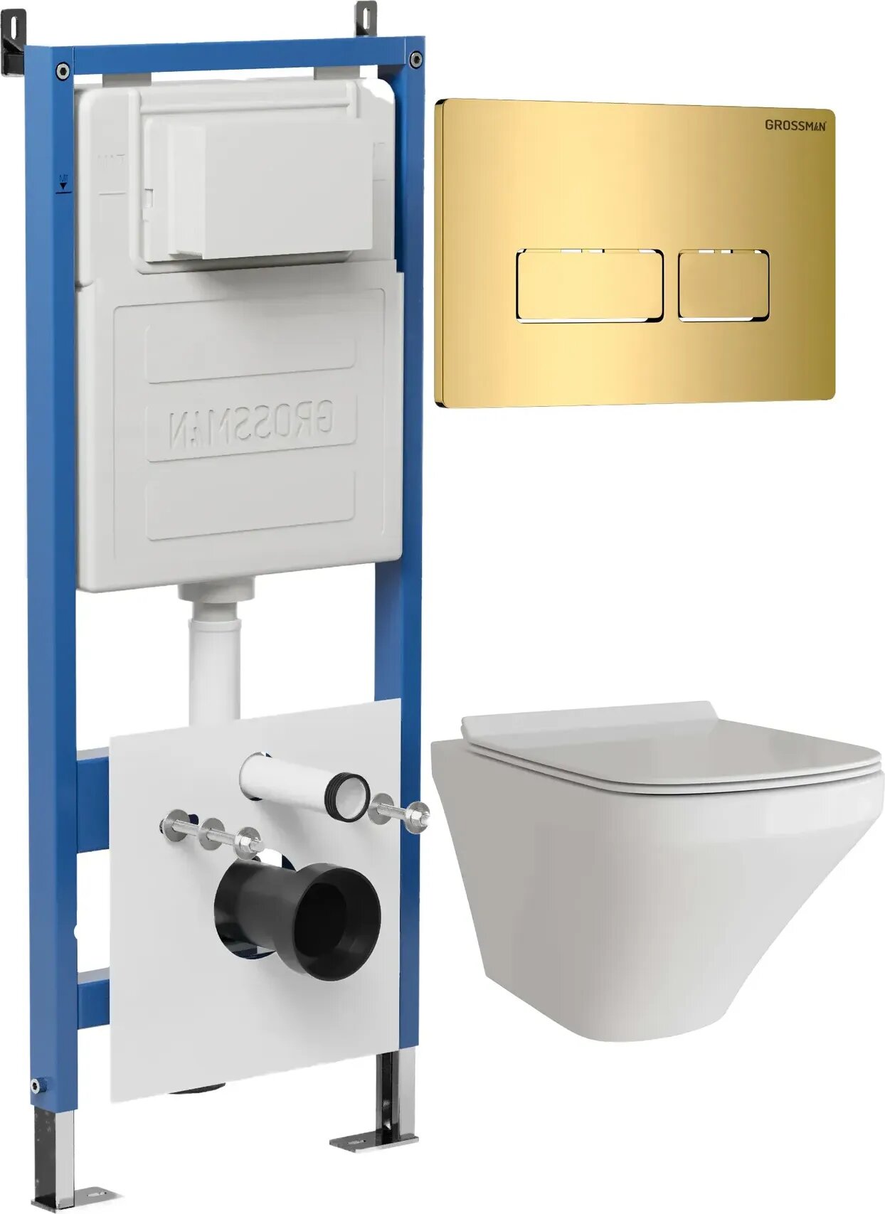 Комплект Унитаз подвесной с инсталляцией Grossman Pragma 97.4440S.03.300 безободковый, белый + Кнопка смыва золото глянцевое