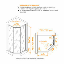 Изделия можно установить, как на плитку с трапом так и на поддон соответствующего размера. (с поддоном стандартного размера не совместим (см. схему изделия)