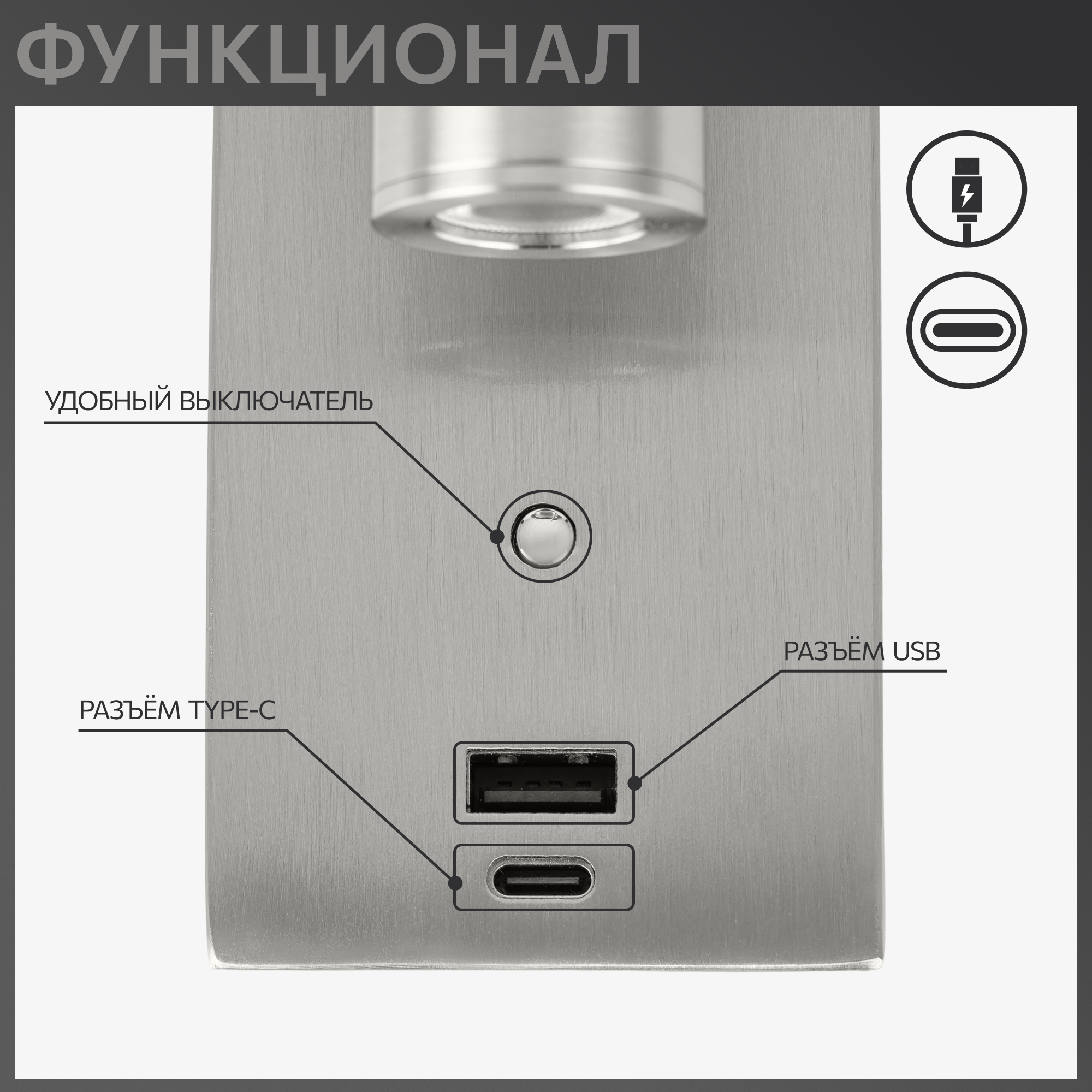| Номенклатура | CL704432 Декарт Хром Мат. Св-к Настенный с USB |
