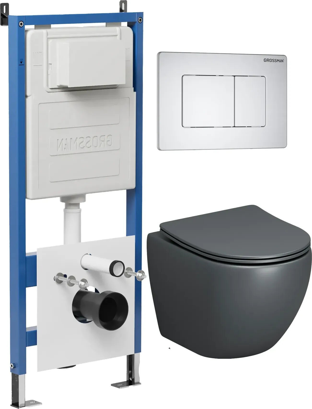 Комплект Унитаз подвесной с инсталляцией Grossman Classic 97.4455GMS.04.01M безободковый, серый матовый+ Кнопка смыва белая матовая