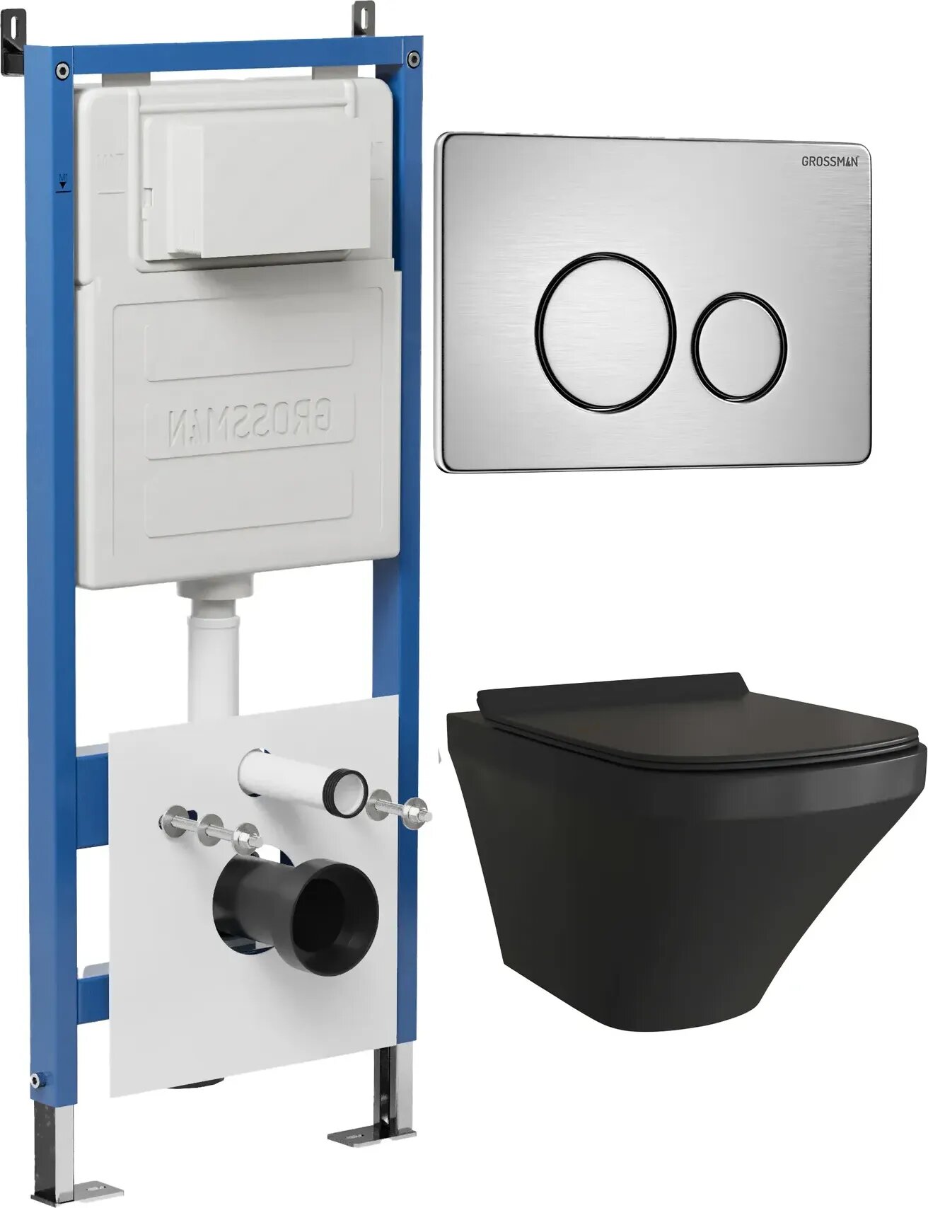 Комплект Унитаз подвесной с инсталляцией Grossman Style 97.4440BMS.05.12M безободковый, черный матовый+ Кнопка смыва хром сатиновый