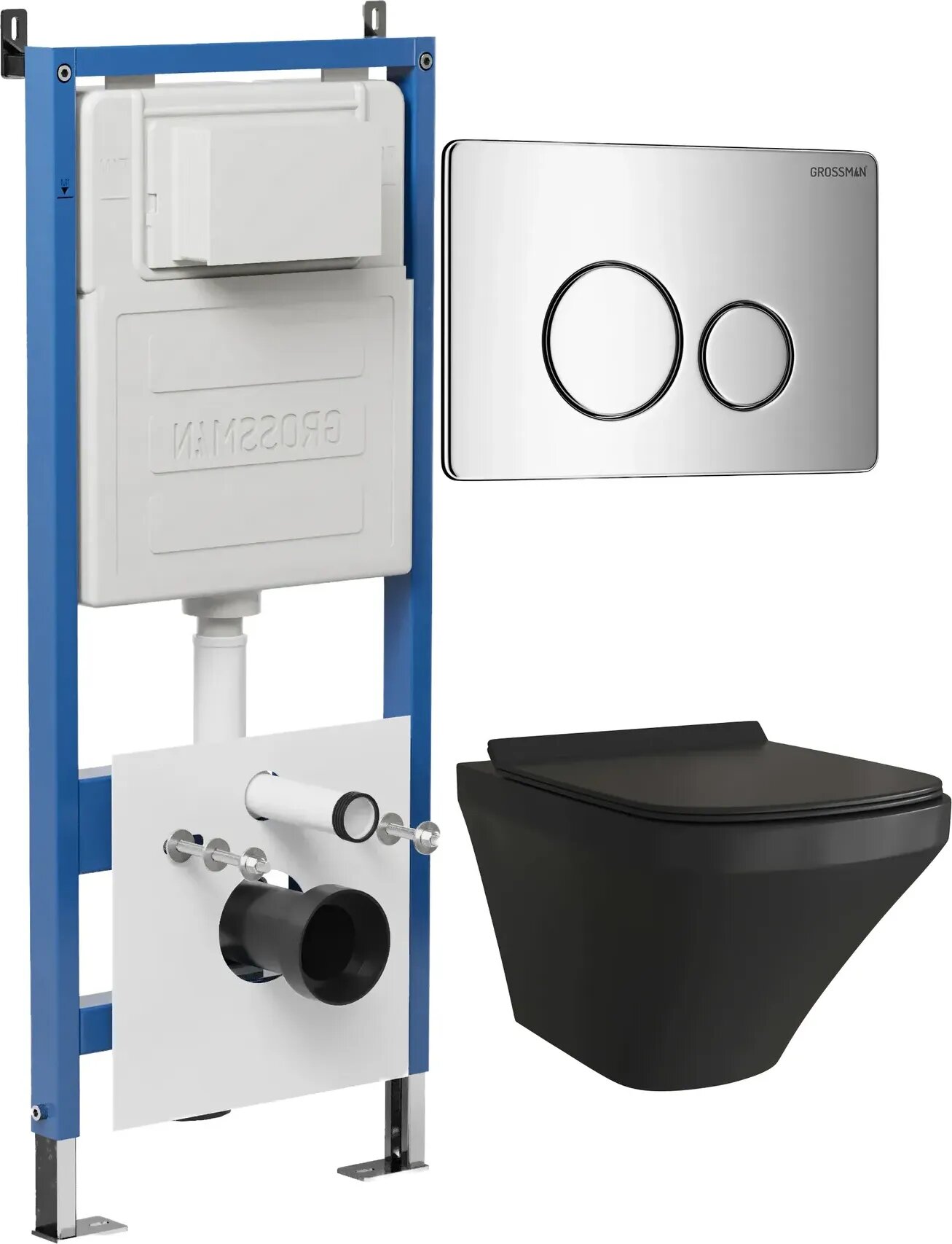 Комплект Унитаз подвесной с инсталляцией Grossman Style 97.4440BMS.05.10M безободковый, черный матовый+ Кнопка смыва хром глянцевый