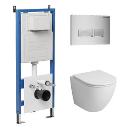 Комплект Унитаз подвесной с инсталляцией Grossman Pragma 97.4455SQ.03.110 безободковый, белый+ Кнопка смыва хром матовый