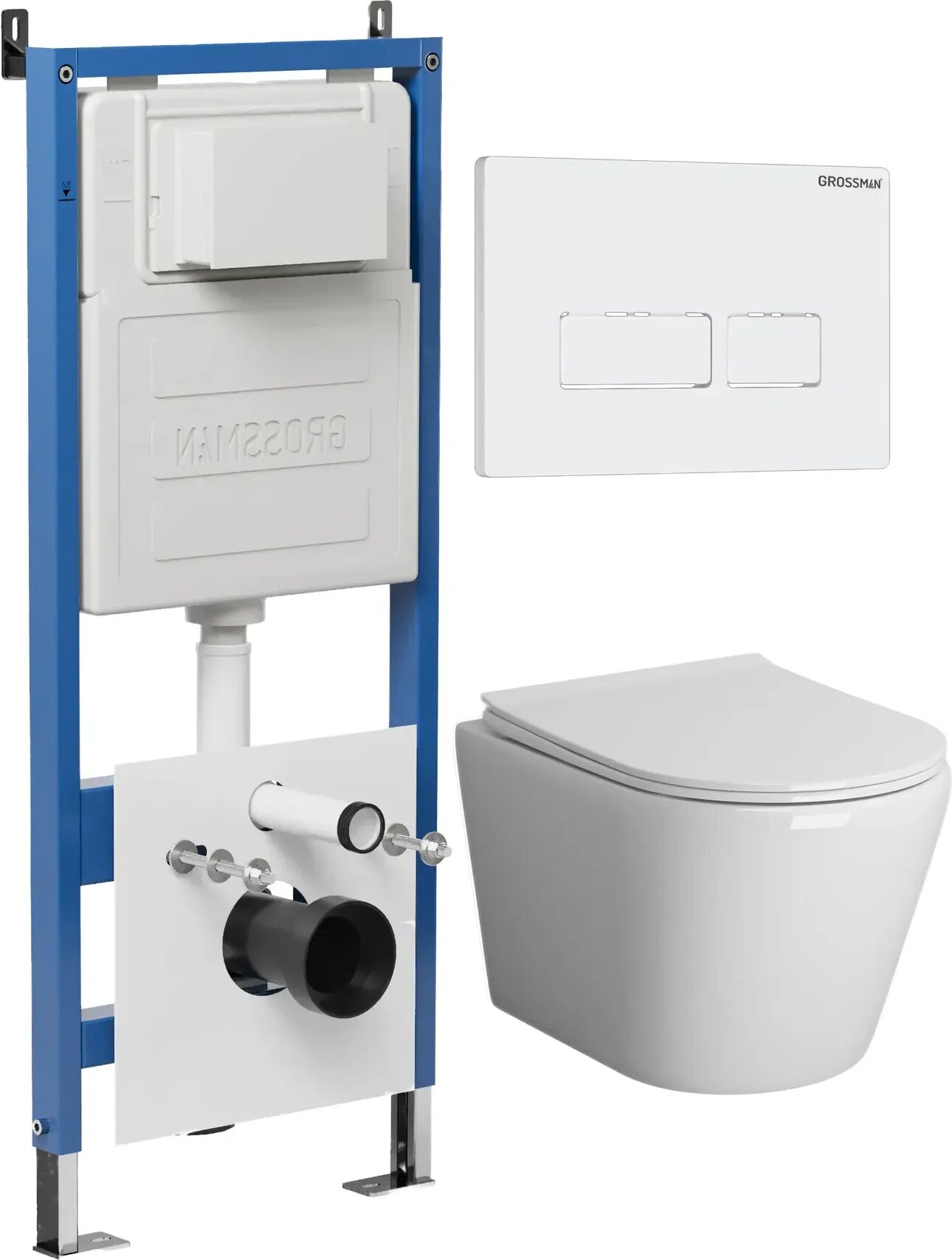 Комплект Унитаз подвесной с инсталляцией Grossman Pragma 97.4478SQ.03.000 безободковый, белый+ Кнопка смыва белая