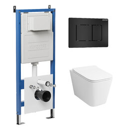 Комплект Унитаз подвесной с инсталляцией Grossman Classic 97.4479SQ.04.21M безободковый, белый+ Кнопка смыва черная матовая