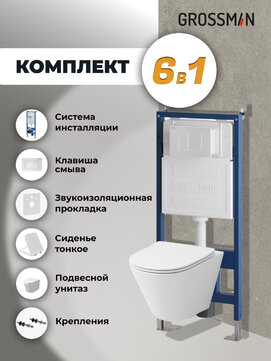Сервис сравнения цен СкидкаГИД предлагает сравнить цены на товар «Комплект Унитаз подвесной с инсталляцией Grossman Classic 97.4477SQ.04.01M безободковый, белый+ Кнопка смыва белая матовая»