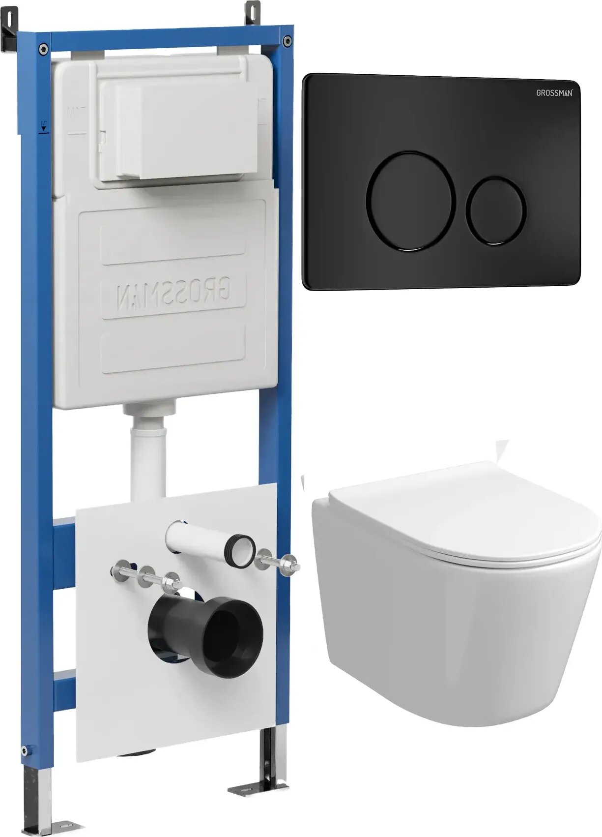 Комплект Унитаз подвесной с инсталляцией Grossman Style 97.4477SQ.05.21M безободковый, белый+ Кнопка смыва черная матовая