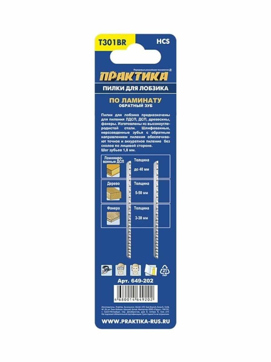 Пилки для лобзика по ламинату дереву ДСП ПРАКТИКА 649-202