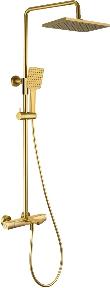 Душевая стойка Kaiser с термостатом с изливом золото шлифованное Cube 01382-3