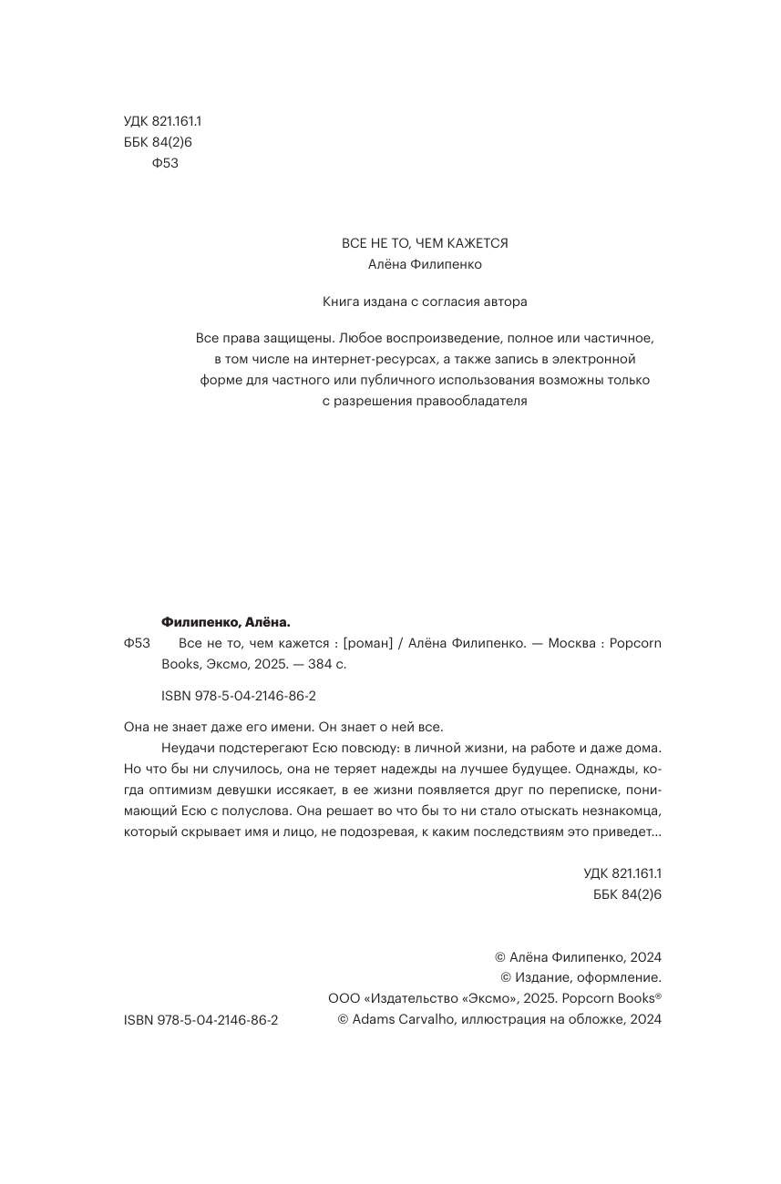 Книга: Все не то чем кажется (Алена Филипенко); Popcorn Books, 2025