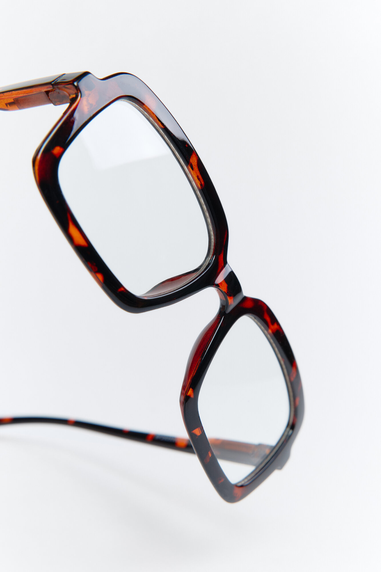 - Леопардовые очки-нулевки в тонкой оправе. Трендовые имиджевые очки для дерзких аутфитов, в которых ты гарантированно не останешься без внимания. Сочетай их с костюмными жилетками на голое тело, оверсайз-блузками и рубашками и высоким пучком, а также яркой красной помадой и создавай стильные аутфиты в офис, на учебу или просто на каждый день