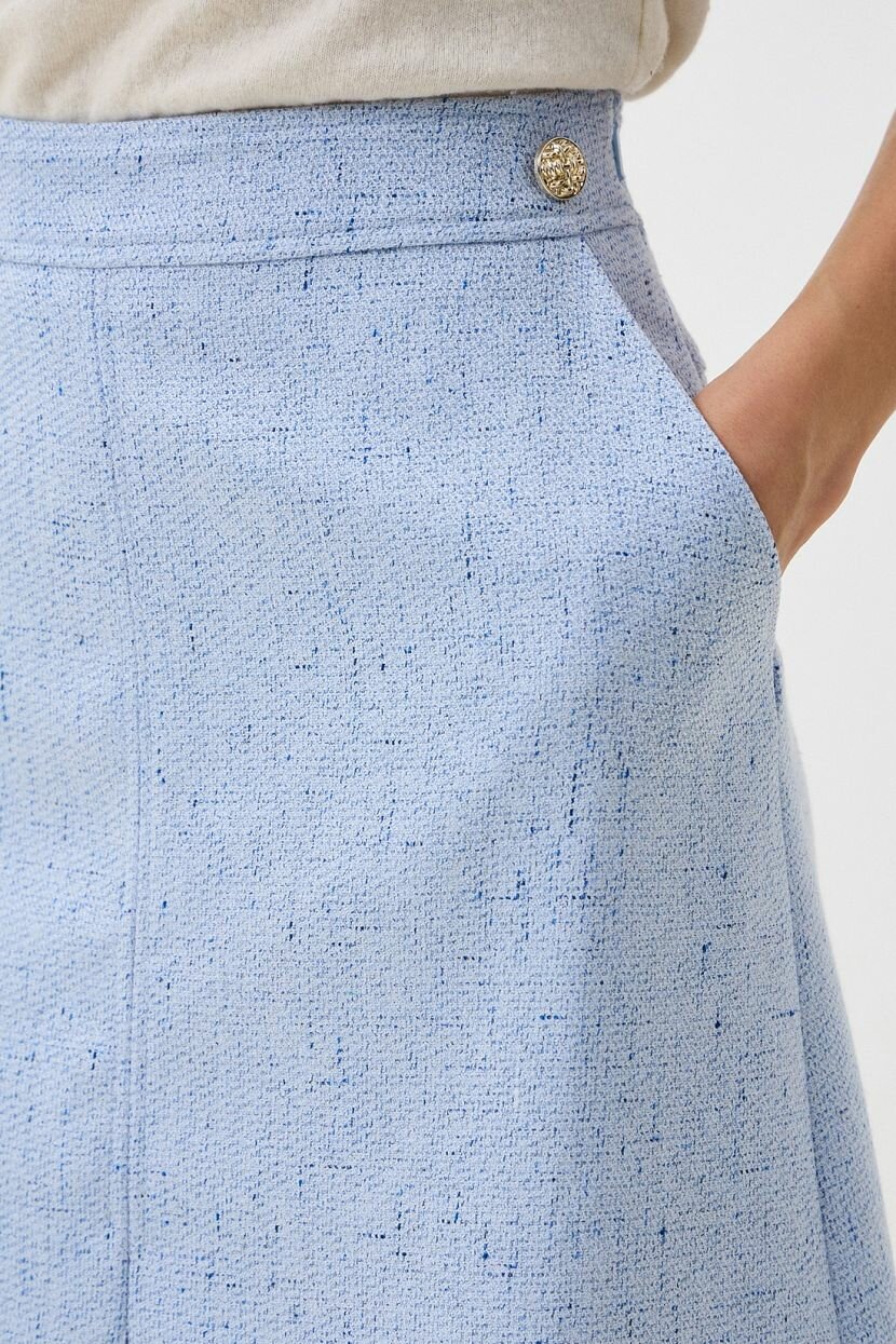 Стильная женская твидовая юбка-миди на весенне-летний сезон. Слегка трапециевидный силуэт и акцентные пуговицы на поясе создают элегантный образ. Застежка на потайную молнию и подкладка из поливискозы обеспечивают комфорт и легкость в носке. Универсальная плотная юбка для повседневных и офисных деловых образов станет достойным дополнением базового женского гардероба благодаря сочетанию благородной лаконичности и непринужденности. Подойдет для высоких женщин, включая тех, кто носит большие размеры. Рекомендуем бережную стирку при температуре не более 30°С для сохранения качества ткани.