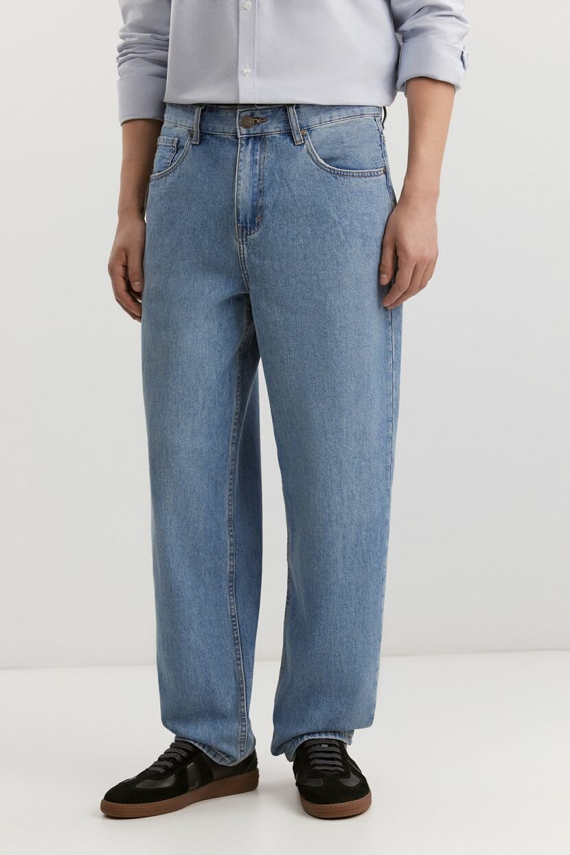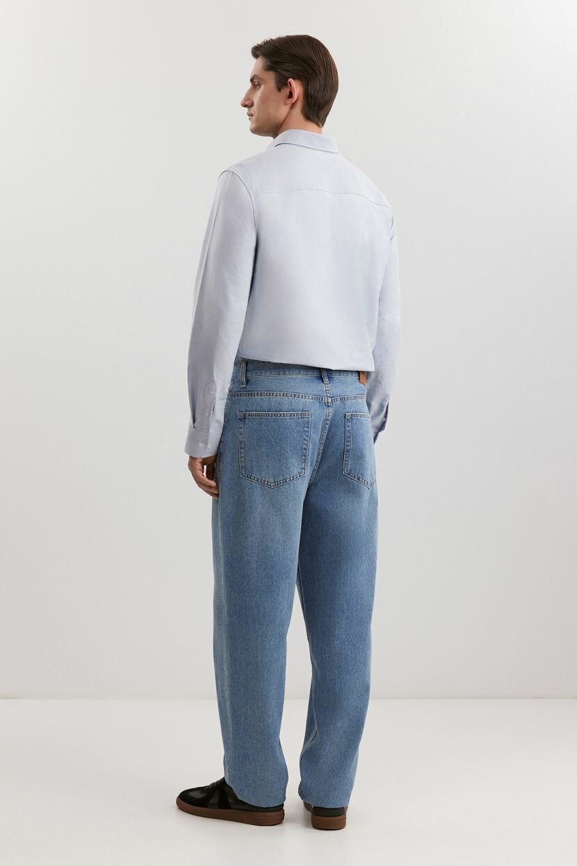 Мужские джинсы из облегчённого смесового хлопкового денима (89% хлопок, 7% полиэстер, 4% вискоза). Такой состав обеспечивает комфорт, прочность и дышащие свойства, благодаря чему модель станет отличным выбором для летнего и весеннего тёплых сезонов. Джинсы имеют полуприлегающий силуэт с прямым кроем в стиле бойфрендов, представлены в голубом цвете с лёгким винтажным эффектом, классическом пятикарманном дизайне с брендированной фурнитурой. Застёжка на молнии и отделочные строчки завершают дизайн, обеспечивая удобство и аккуратность. Рекомендуется бережная стирка при температуре не более 30°C для сохранения качества материала.