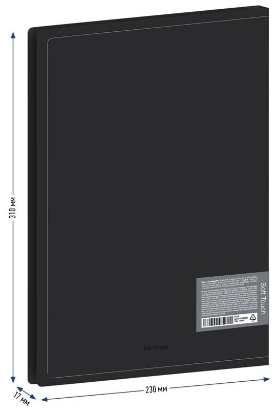 Папка с 10 вкладышами Berlingo "Soft Touch" 17 мм 700 мкм черная с внутр. карманом (DB4_10980)