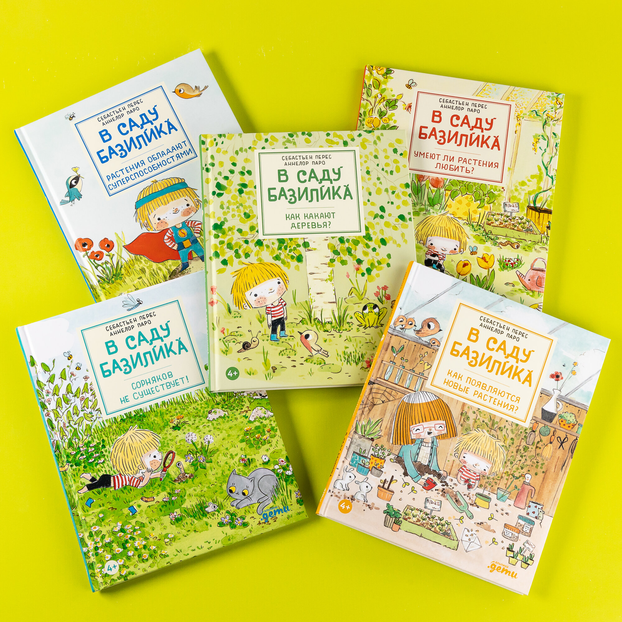 Серия «В саду Базилика» — это познавательные книги для самых маленьких об удивительном мире растений. Бабушка Морковь найдёт ответы на самые разные вопросы своего внука Базилика: могут ли растения любить, как у них появляются дети, какими способностями они обладают и что умеют.