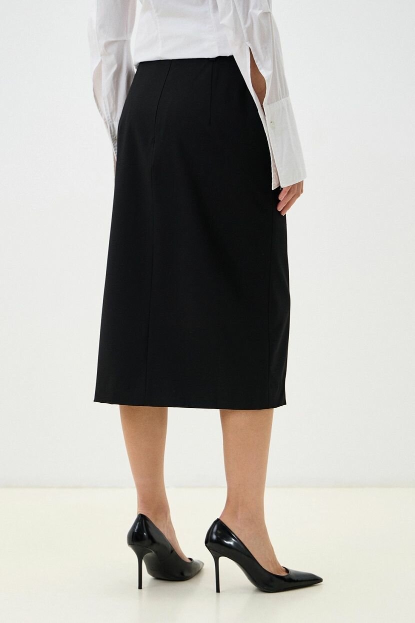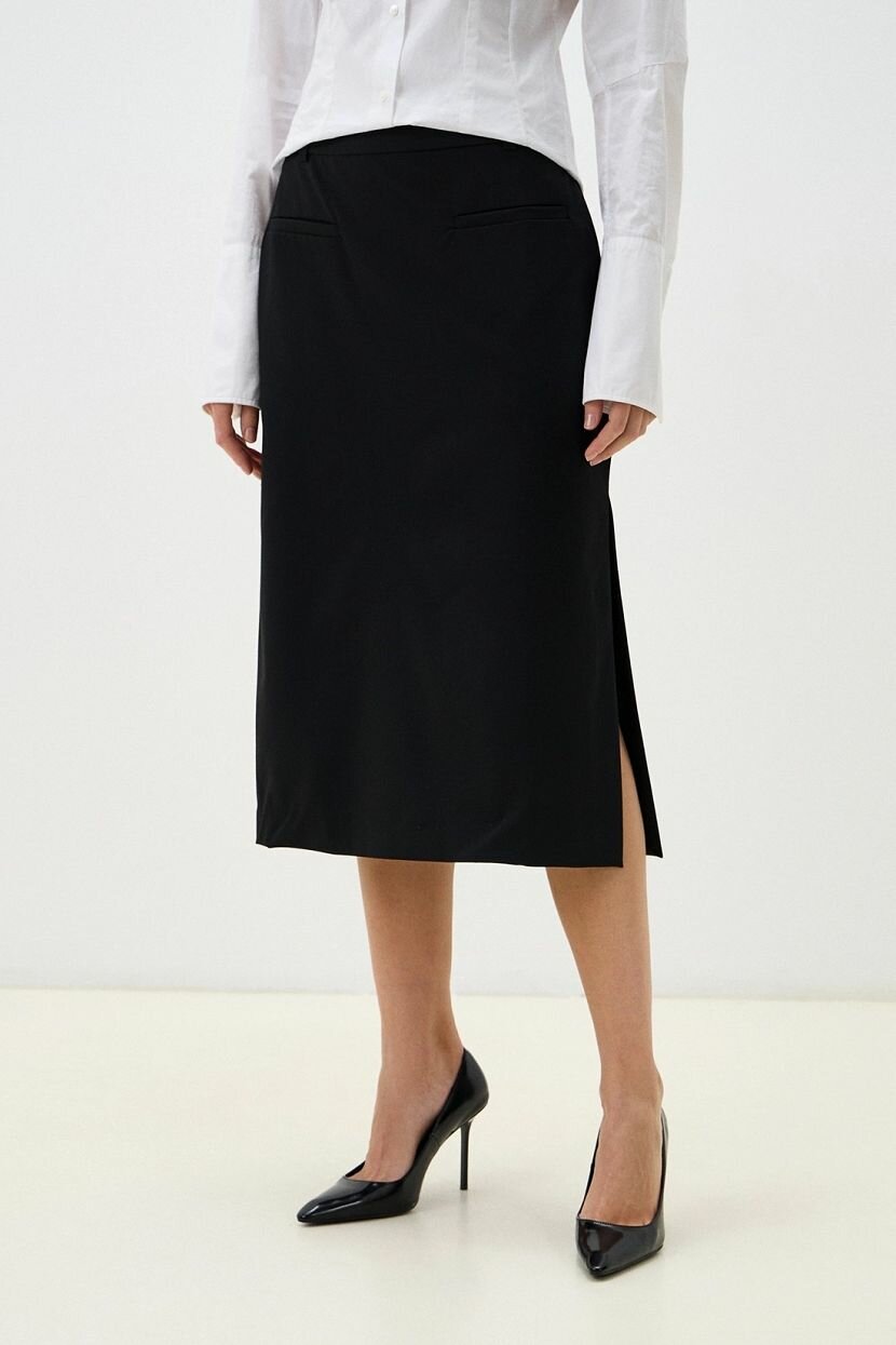 Стильная юбка-миди из костюмной поливискозной ткани. Модель имеет карманы-листочки по переду и застежку на потайную молнию в среднем шве спинки. Слегка приталенный фасон с разрезом в боковом шве добавляет элегантности и утонченности образу. Прямая линия силуэта и средняя посадка, делают ее удобной для офиса, повседневной носки, прогулок, свиданий и вечерних мероприятий. Легкий, но плотный материал создает ощущение комфорта и защищенности, подчеркивая стиль и благородную лаконичность одежды. Юбка сочетает в себе непринужденность и естественность, добавляя достойный и элегантный акцент в женский гардероб. Подходит для высоких женщин, представлена в больших размерах. Рекомендуем бережную стирку при температуре не более 30°C для сохранения качества ткани.