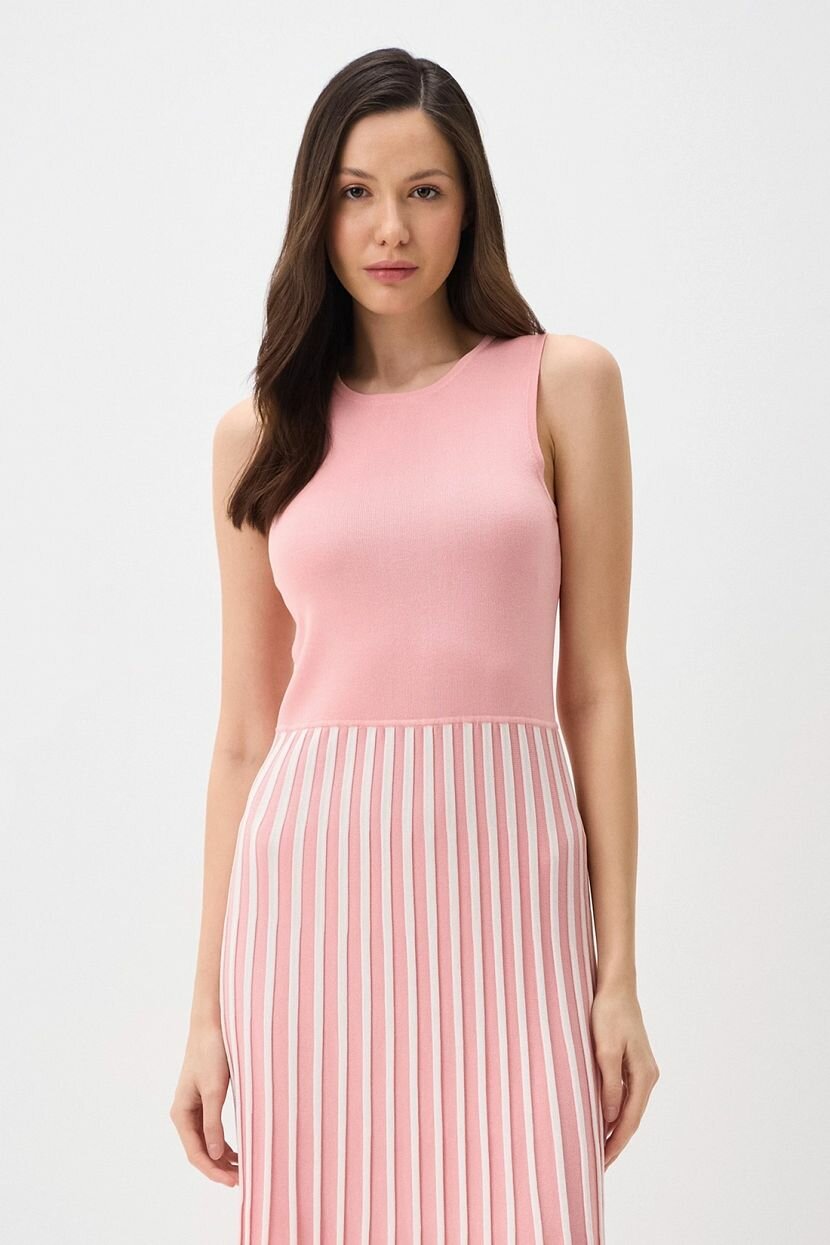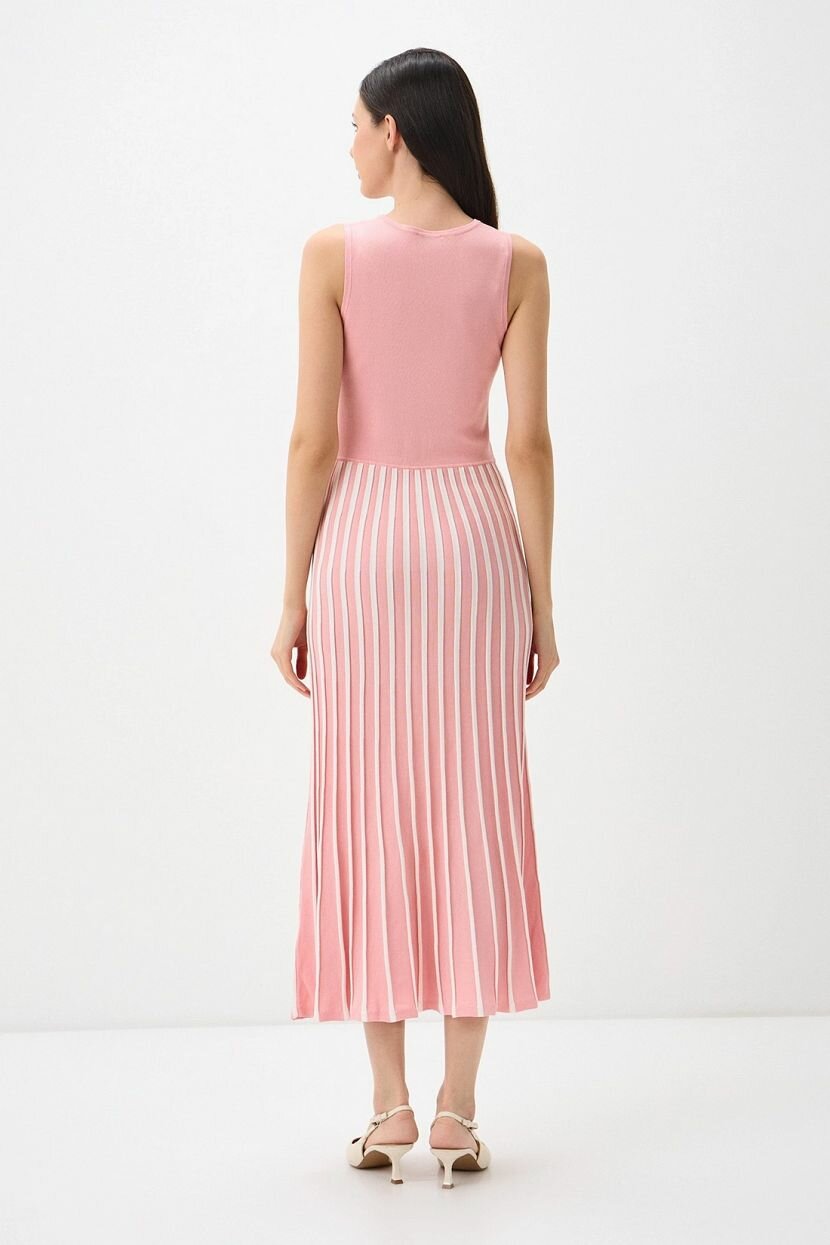 Женское платье длины миди из смесовой вискозной пряжи (89% вискозы и 11% полиамида). Дышащий материал с включением натуральных волокон обеспечивает комфорт и свободу движений. Модель имеет полуприлегающий крой с облегающим лифом и расклешенной юбкой с эффектом гофре для романтичного элегантного образа. Платье длиной ниже колена не предусматривает застежек и подкладки, отлично стилизуется в повседневных кэжуал образах для прогулок и свиданий. Двухцветный дизайн в розовом оттенке и однотонный для варианта в молочном цвете. Доступно в больших размерах. Рекомендуется ручная стирка при температуре не более 30°C для сохранения качества ткани.