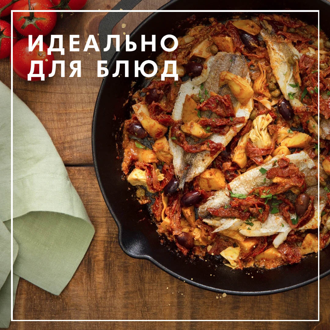 | Состав | Сушеные томаты 58%, подсолнечное масло, винный уксус, соль, орегано, антиокислители: аскорбиновая кислота и диоксид серы, регулятор кислотности: лимонная кислота и молочная кислота. |