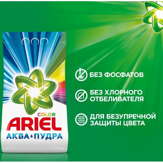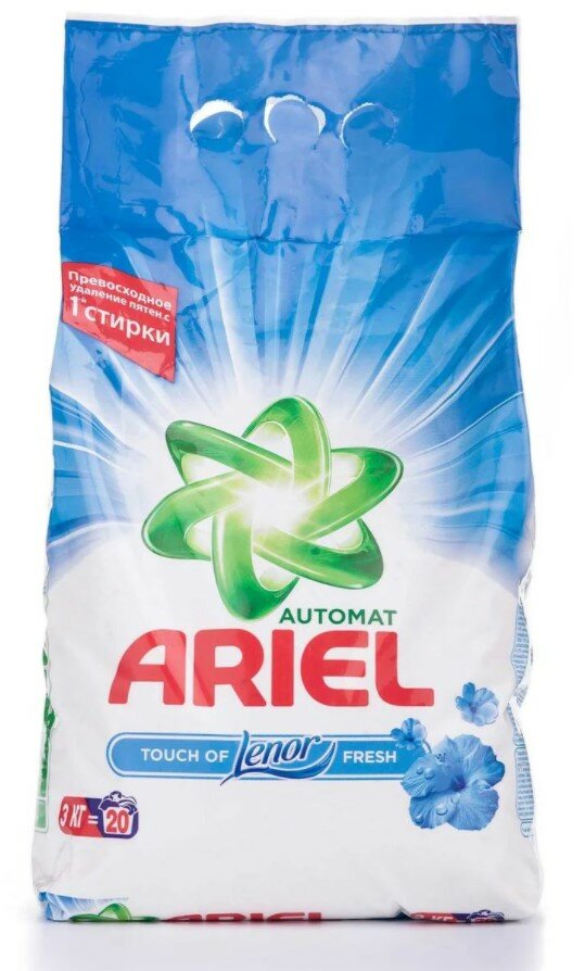 Порошок для стирки Ariel Аквапудра С Ароматом От Lenor для цветных тканей превосходно и бережно отстирывает загрязнения на одежде даже в холодной воде, и дарит белью приятный аромат свежести от Lenor, который сохраняется надолго. Безупречная чистота и приятный аромат одежды дарят прекрасное настроение и уверенность в себе, поэтому очень важно уделять должное внимание стирке. Именно для этого мы создали стиральный порошок Ариэль Аквапудра с Ароматом Lenor для цветного белья. Благодаря новой технологии Аквапудра, стиральный порошок Ариель растворяется, едва коснувшись воды, и моментально активируется: удаляет трудновыводимые пятна, глубоко проникая в структуру волокон, и не дает загрязнениям въедаться. Порошок устраняет загрязнения, вызывающие неприятные запахи, такие как запах пота и тела, придавая одежде мягкий и свежий аромат Lenor и сияющую чистоту даже на воротничках и манжетах рубашек без следов порошка и разводов. Для наилучших результатов стирки мы рекомендуем попробовать наши лучшие стиральные порошки – премиальную линейку Ariel Extra: Ariel Oxi Effect поможет справиться с самыми сложными пятнами благодаря эффекту пятновыводителя в составе, а Ariel Extra Защита Цвета поможет надолго сохранить яркость цветой и форму одежды благодаря технологии разглаживания волокон. Существуют также в инновационной форме капсул для стирки PODs Всё в 1.Преимущества Ariel Аквапудра с Ароматом от Lenor:- Безупречное удаление пятен с первой стирки даже при 20°C- Порошок быстро растворяется, не оставляя следов и разводов на одежде- Сохраняет яркость цветных вещей на длительный срок- Помогает справиться с застарелыми пятнами- Не дает грязи и пятнам въедаться в структуру волокон- Мягкий аромат Lenor надолго сохраняется на вещах после стирки и придаёт ощущение свежести- Порошок Ariel С Ароматом Lenor также предлагается в форме жидких стиральных средств: геля для стирки и капсул для стирки PODs Всё-в-1Так как стиральный порошок не содержит в составе кондиционер, для большего эффекта используйте кондиционер для белья Lenor: он обеспечивает мягкость белья и защищает одежду от появления катышков, потери формы и потери цвета. Теперь ваши любимые вещи прослужат вам еще дольше.Безопасность превыше всего! Наши стиральные средства не содержат фосфаты или хлор. Все активные компоненты биоразлагаемы.