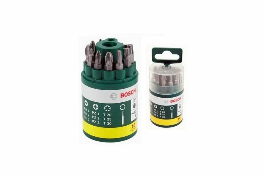 Все биты из набора Bosch, в количестве 9 штук, находятся в удобной, цилиндрической формы, коробке. Вынимать их очень комфортно отсюда. В комплекте все необходимые для моей работы варианты сверл. Единственная проблема, с которой я столкнулся, заключалась в длительном поиске на сайтах этого товара - уж очень у мастеров успехом пользуется. С отличным их качеством я познакомился в гараже у своего соседа. После чего задался целью и себе такие взять: отоваривался на данной интернет-площадке. Для любой задачи подбираю нужный вариант. Металл не стачивается при длительном пользовании - это факт. Быстро работу делаю с ними.