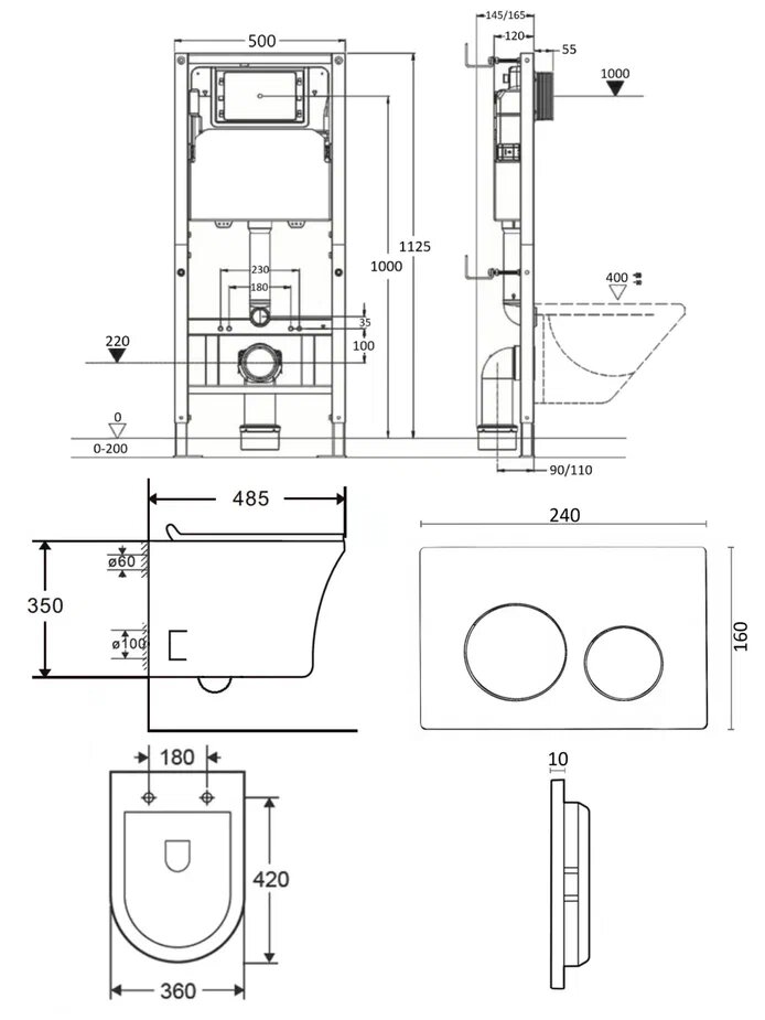 | Состав комплекта | унитаз, сиденье, инсталляция, кнопка |