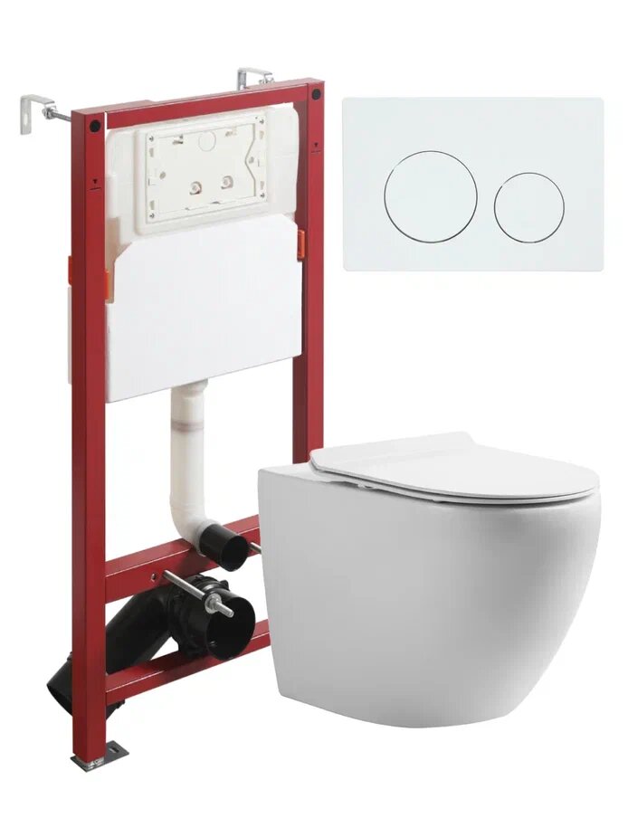 Комплект унитаз подвесной Orange CI07-100W+APB188 с микролифтом + инсталляция + кнопка белая
