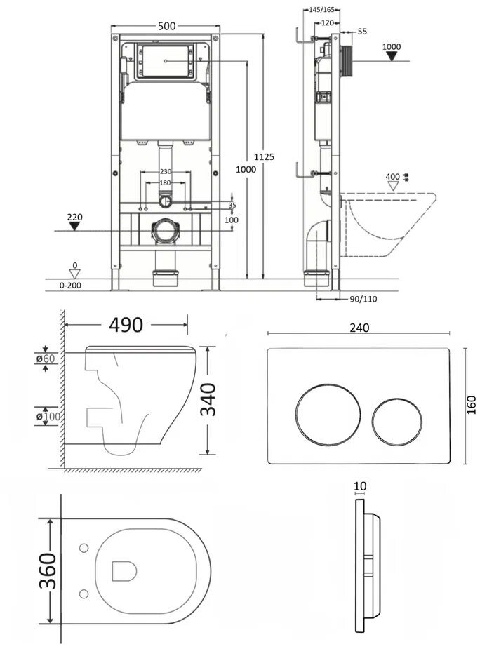 | Состав комплекта | унитаз, сиденье, инсталляция, кнопка |