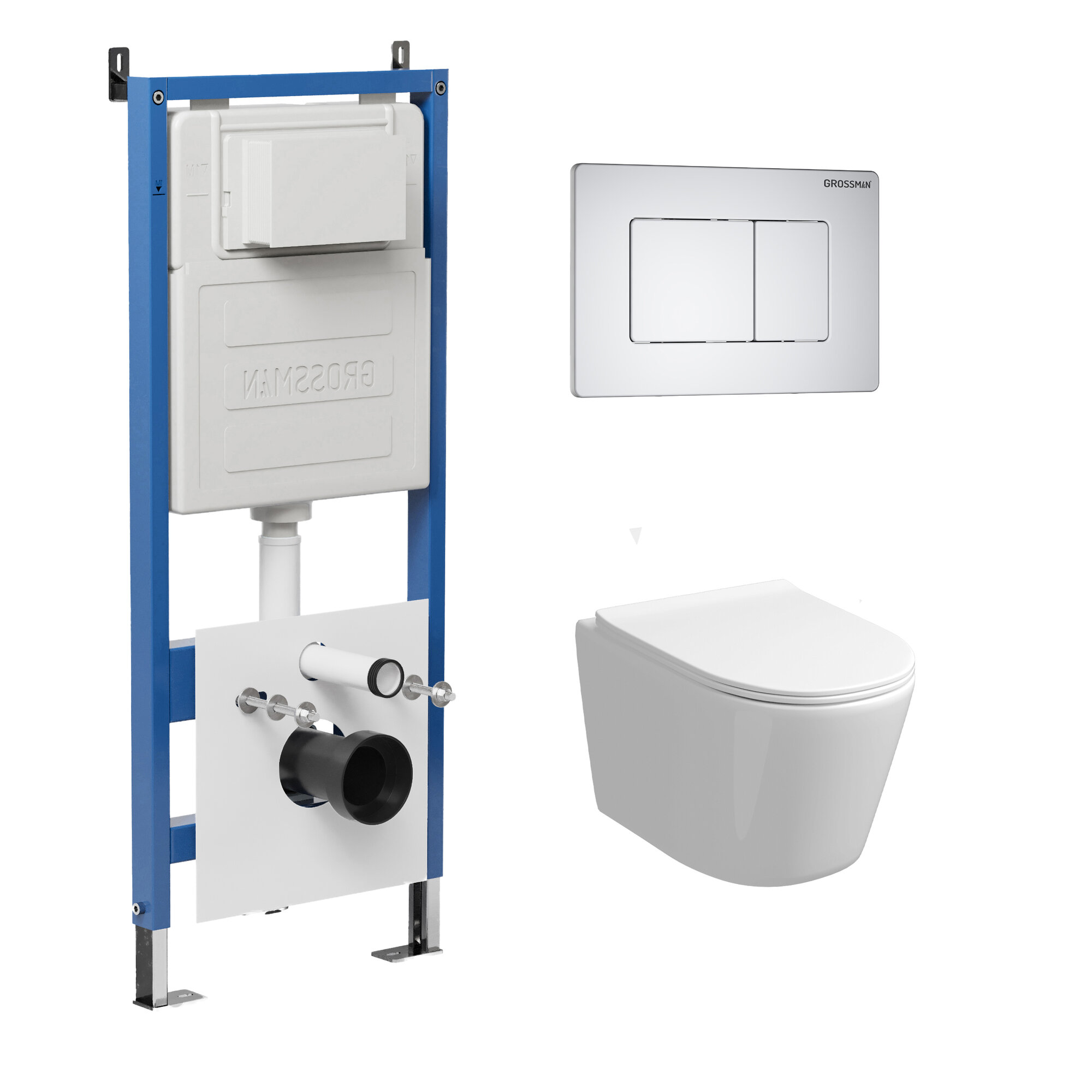 Комплект Унитаз подвесной с инсталляцией Grossman Classic 97.4477S.04.01M безободковый, белый+ Кнопка смыва белая матовая