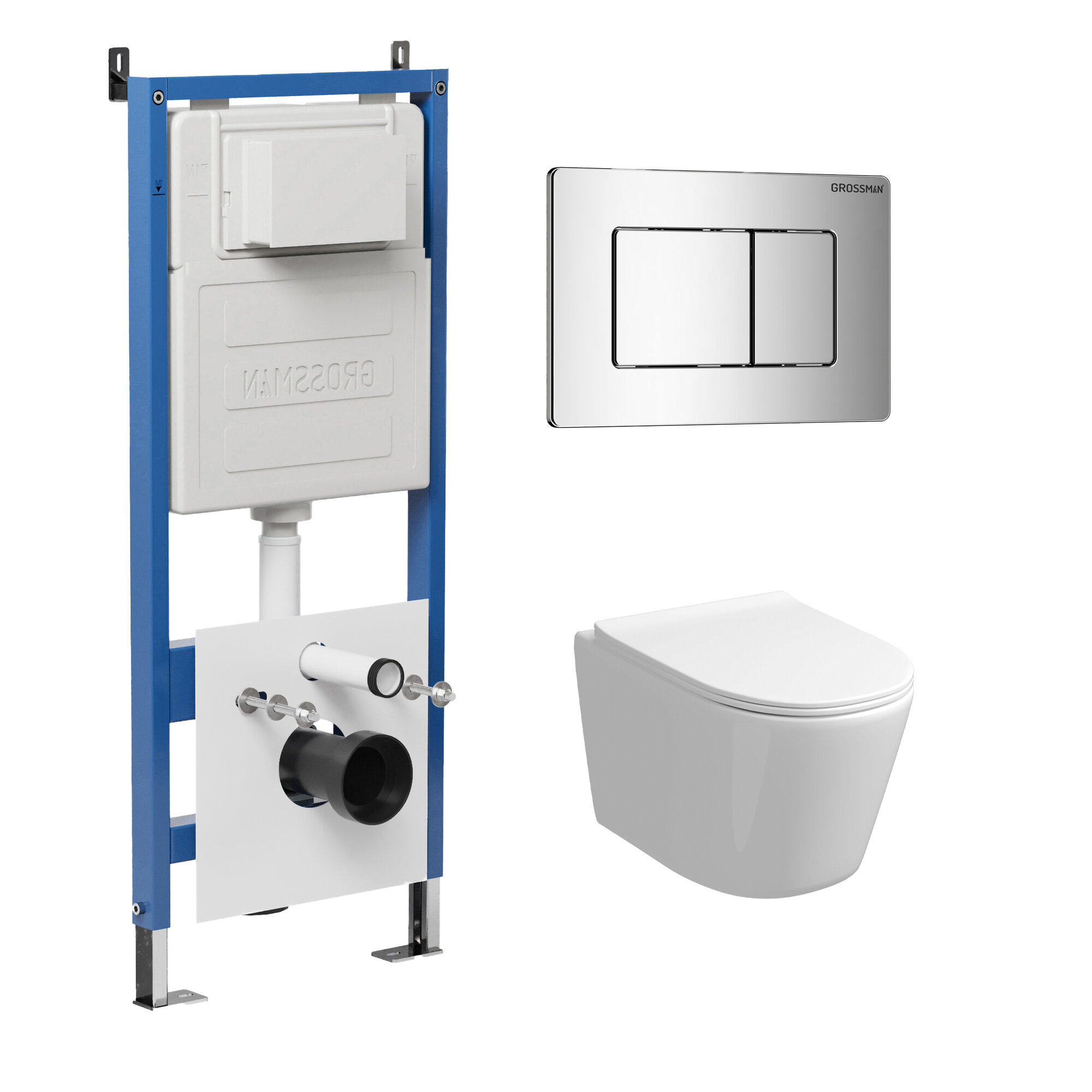 Комплект Унитаз подвесной с инсталляцией Grossman Classic 97.4477S.04.10M безободковый, белый+ Кнопка смыва хром глянцевый